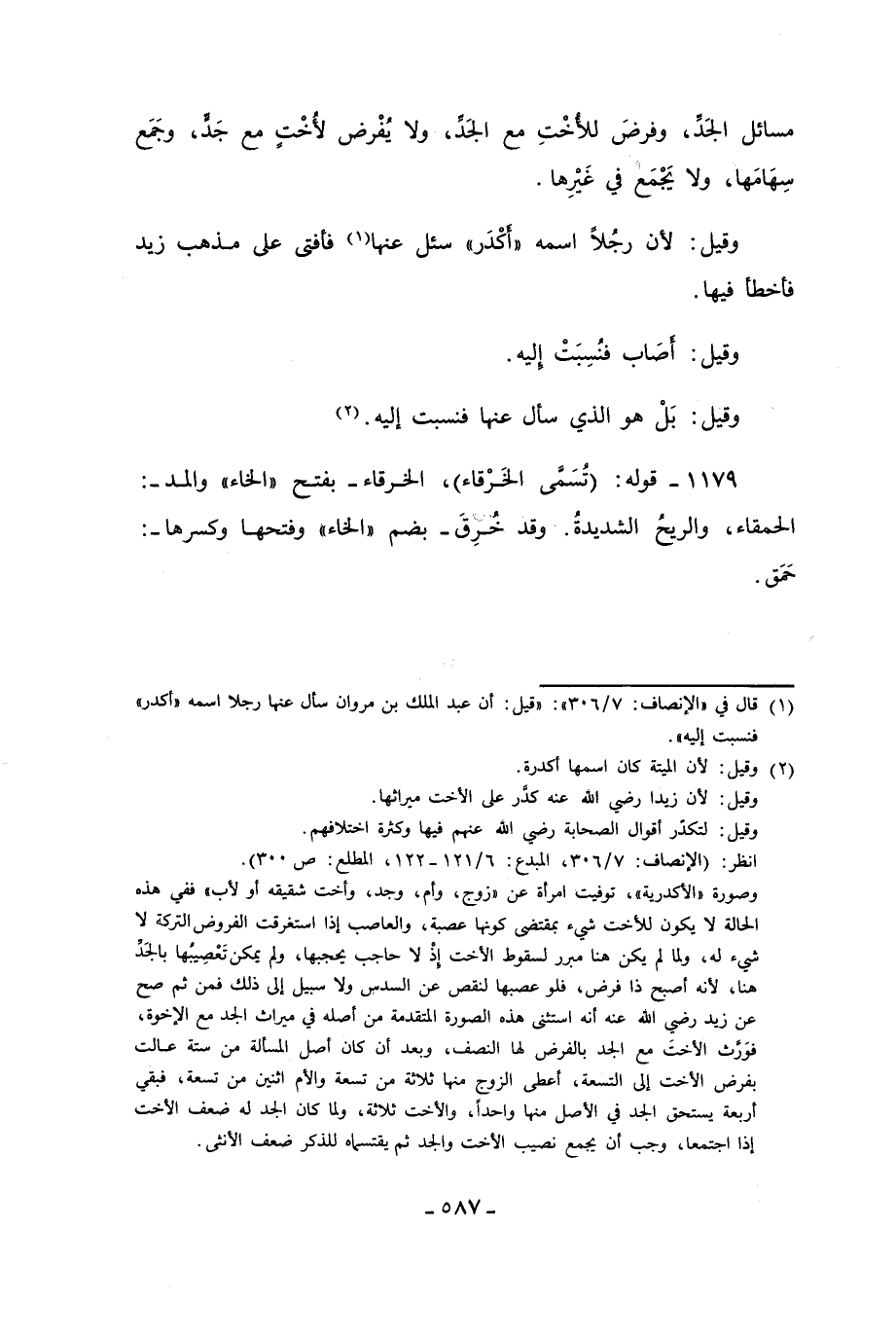 (¬1) قال في "الإنصاف: 7/ 306": ، قيل: أن عبد الملك بن مروان سأل عنها رجلا اسمه "أكدر" فنسبت إليه".