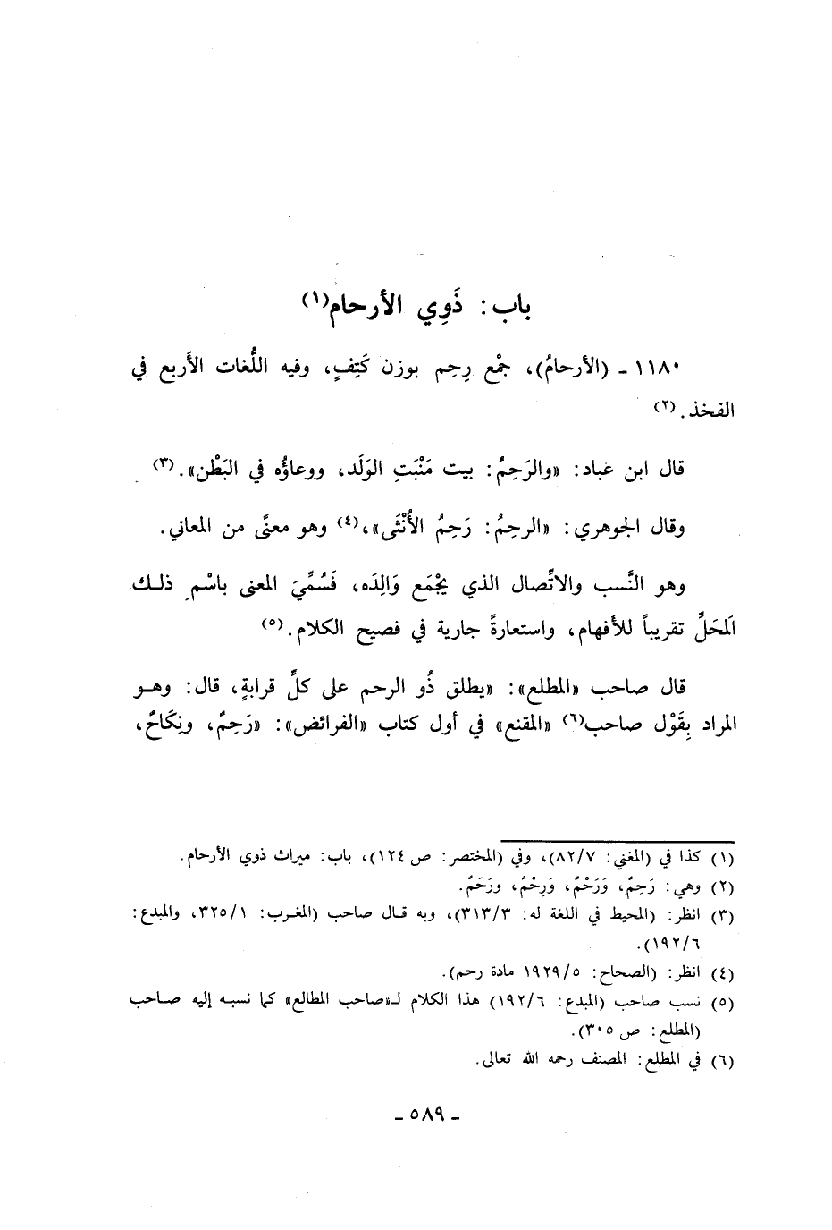(¬5) نسب صاحب (المبدع: 6/ 192) هذا الكلام لـ"صاحب المطالع" كما نسبه إليه صاحب (المطلع: ص 305).
