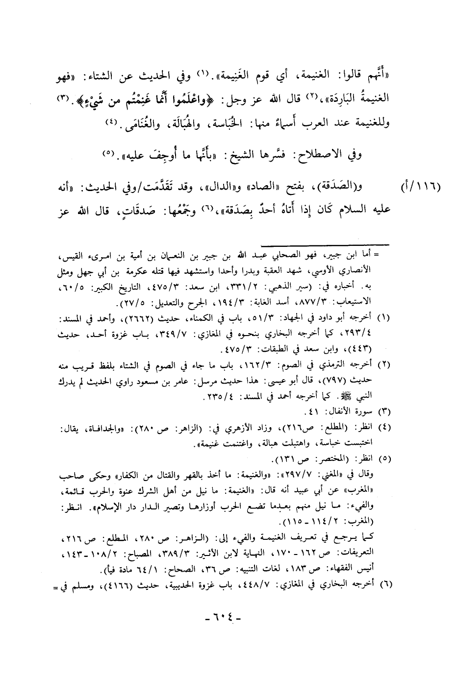 كما يرجع في تعريف الغنيمة والفيء إلى: (الزاهر: ص 280، المطلع: ص 216، التعريفات: ص 162 - 170، النهاية لابن الأثير: 3/ 389، المصباح: 2/ 108 - 143، أنيس الفقهاء: ص 183، لغات التنبيه: ص 36، الصحاح: 1/ 64 مادة فيأ).