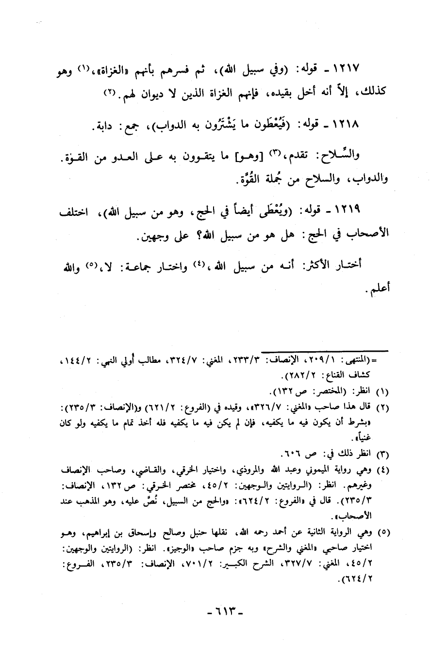1219 - قوله: (وُيعْطَى أيضاً في الحج، وهو من سبيل الله)، اختلف الأصحاب في الحج: هل هو من سبيل الله؟ على وجهين.