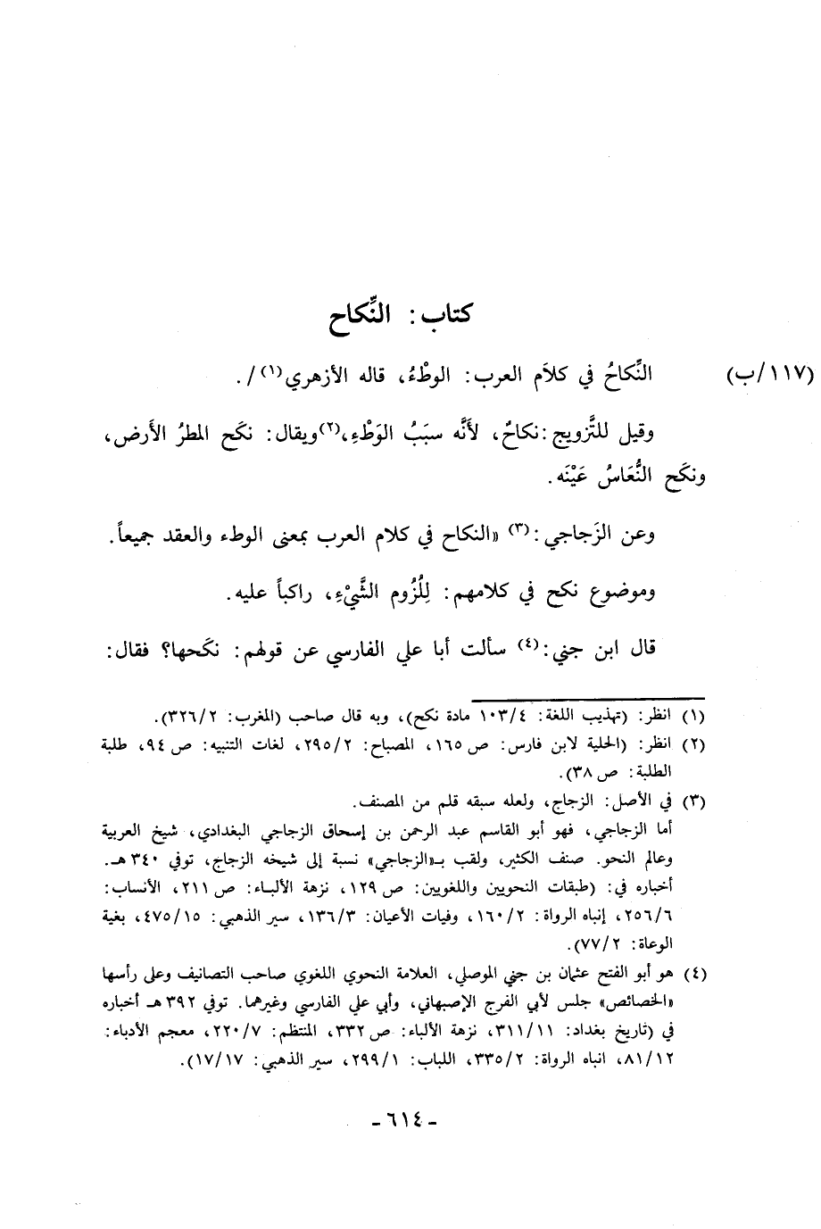 (¬1) انظر: (تهذيب اللغة: 4/ 103 مادة نكح)، وبه قال صاحب (المغرب: 2/ 326).