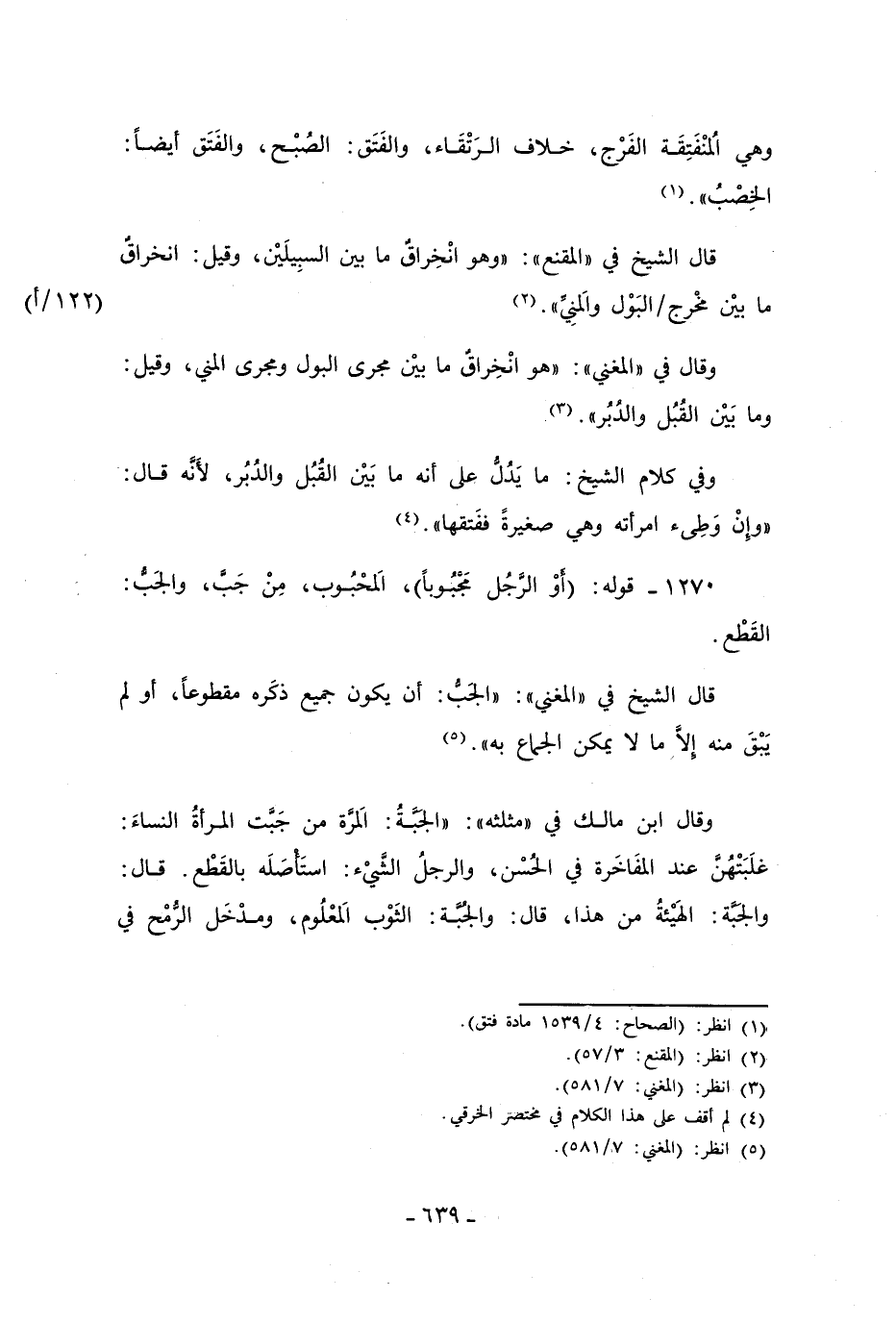 قال الشيخ في "المغنِى": "الجَبُّ: أن يكون جميع ذكَره مقطوعاً، أو لم يَبْقَ منه إلا ما لا يمكن الجماع به". (¬5)