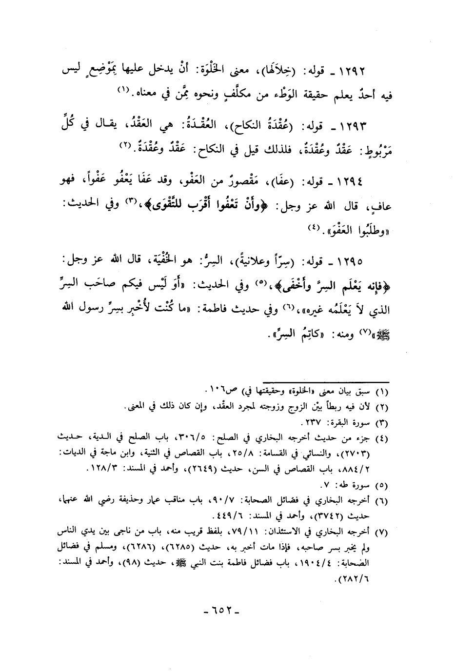 1295 - قوله: (سِرّاً وعلانيةً)، السِرُّ: هو الخُفْيَة، قال الله عز وجل: {فَإِنَّهُ يَعْلَمُ السِّرَّ وَأَخْفَى}، (¬5) وفي الحديث: (أوَ لَيْس فيكم صاحَب السِرِّ الذي لاَ يَعْلَمُه غيره"، (¬6) وفي حديث فاطمة: "ما كُنْت لأُخْبِر بسِرِّ رسول الله - صلى الله عليه وسلم -" (¬7) ومنه: "كاتِمُ السِرِّ".