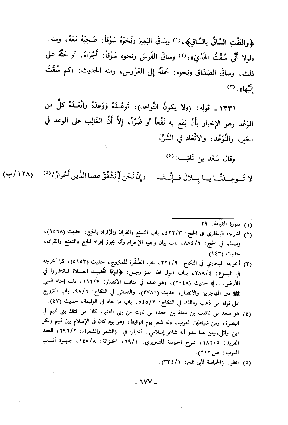 1331 - قوله: (ولا يكونُ التَّواعد)، تَوعَّدَهُ وَوَعدَهُ واتَّعَدَهُ كلٌّ من الوَعْد وهو الإِخبار بأنْ يَقَع به نَفْعًا أو ضُرًّا، إلَّا أنَّ الغَالِب على الوعد في الخير، والتَّوَعُد، والاتِّعَاد في الشَّرِّ.