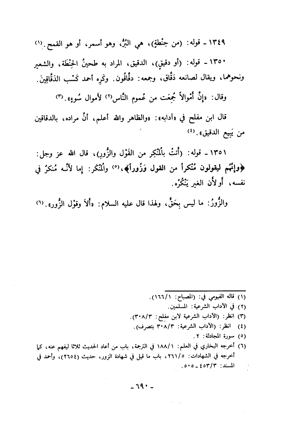 1351 - قوله: (أتتْ بالُمنْكِر من القَوْل والزُّورِ)، قال الله عز وجل: {وَإِنَّهُمْ لَيَقُولُونَ مُنْكَرًا مِنَ الْقَوْلِ وَزُورًا}، (¬5) والُمنْكَر: إما لأنَّه مُنكرٌ في نفسه، أو لأن الغير يَنْكُرُه.