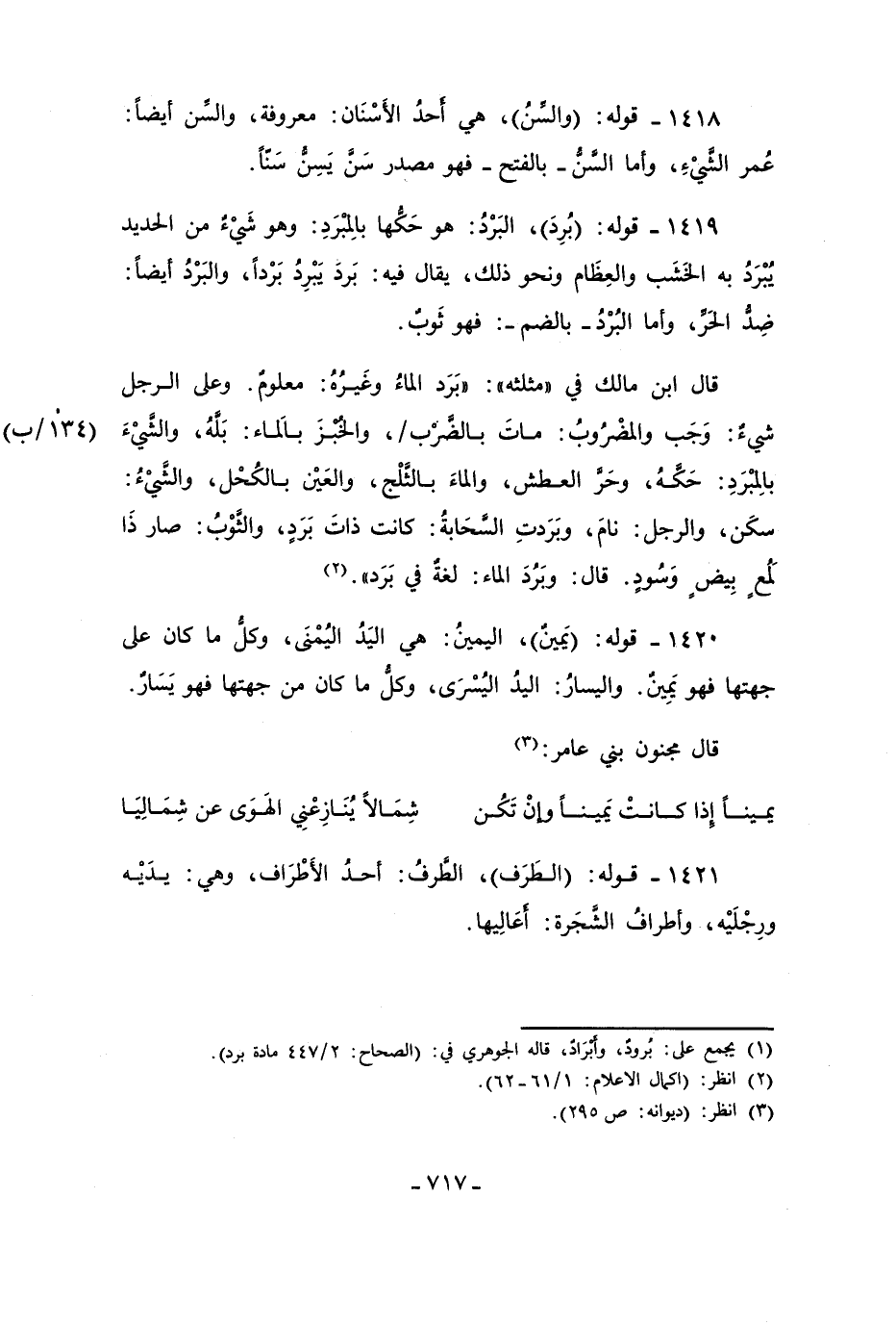 (¬1) يُجمع على: بُرودَ، وأبْرَادٌ، قاله الجوهري في: (الصحاح: 2/ 447 مادة برد).