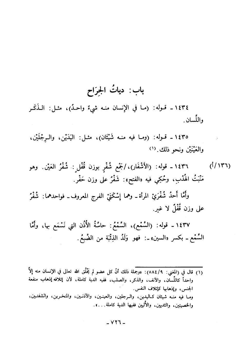 1435 - قوله: (وما فيه منه شَيْئَان)، مثل: اليَدَيْن، والرِجْلَيْن، والعَيْنَيْن ونحو ذلك. (¬1)