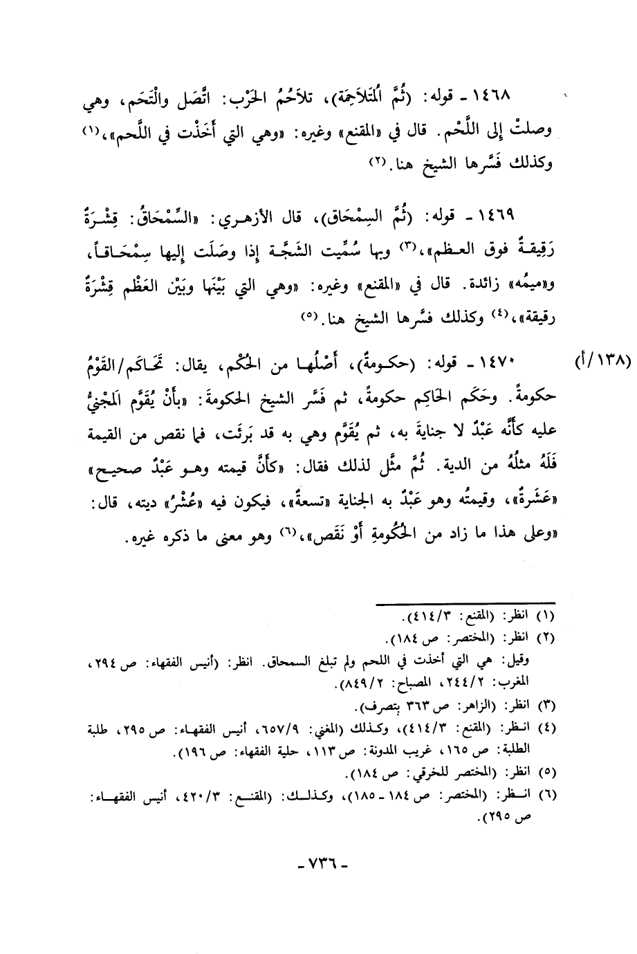 1468 - قوله: (ثُمَّ المُتَلَاحِمَة)، تلَاحُمُ الحَرْب: اتَّصَل والْتَحَم، وهي وصلتْ إِلى اللَّحْم. قال في "المقنع" وغيره: "وهي التي أَخَذْت في اللَّحم"، (¬1) وكذلك فَسَّرها الشيخ هنا. (¬2)