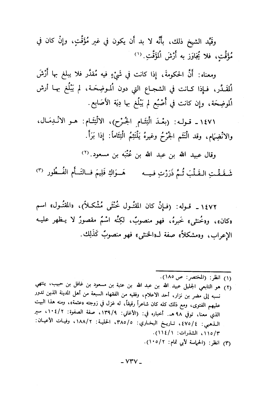 وقال عبيد الله بن عبد الله بن عُتْبَه بن مسعود. (¬2)