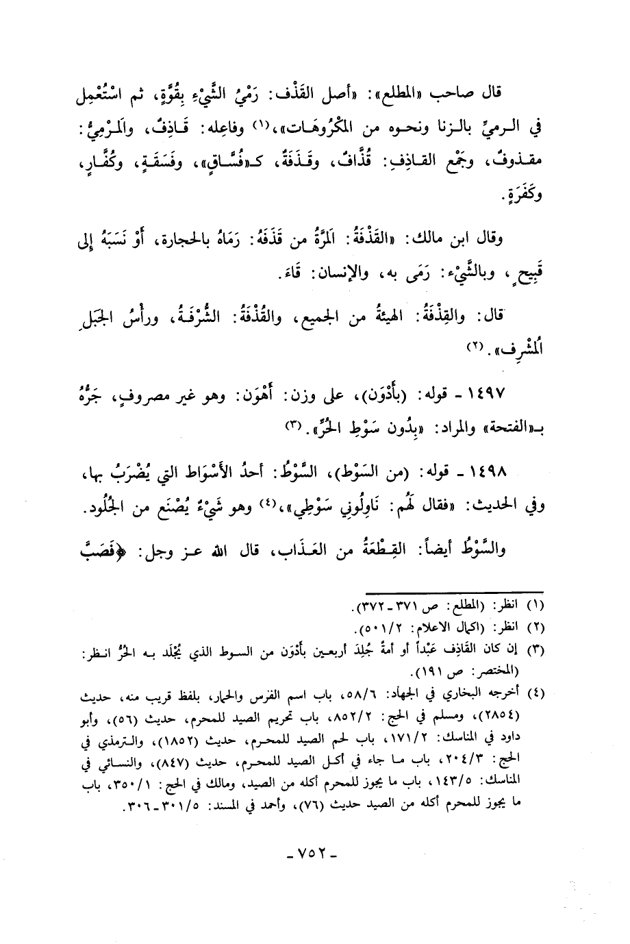 1498 - قوله: (من السَوْط)، السَّوْطُ: أحدُ الأَسْوَاط التي يُضْرَبُ بها، وفي الحديث: "فقال لَهُم: نَاوِلُونِي سَوْطِي"، (¬4) وهو شَيْءٌ يُصْنَع من الجُلُود.
