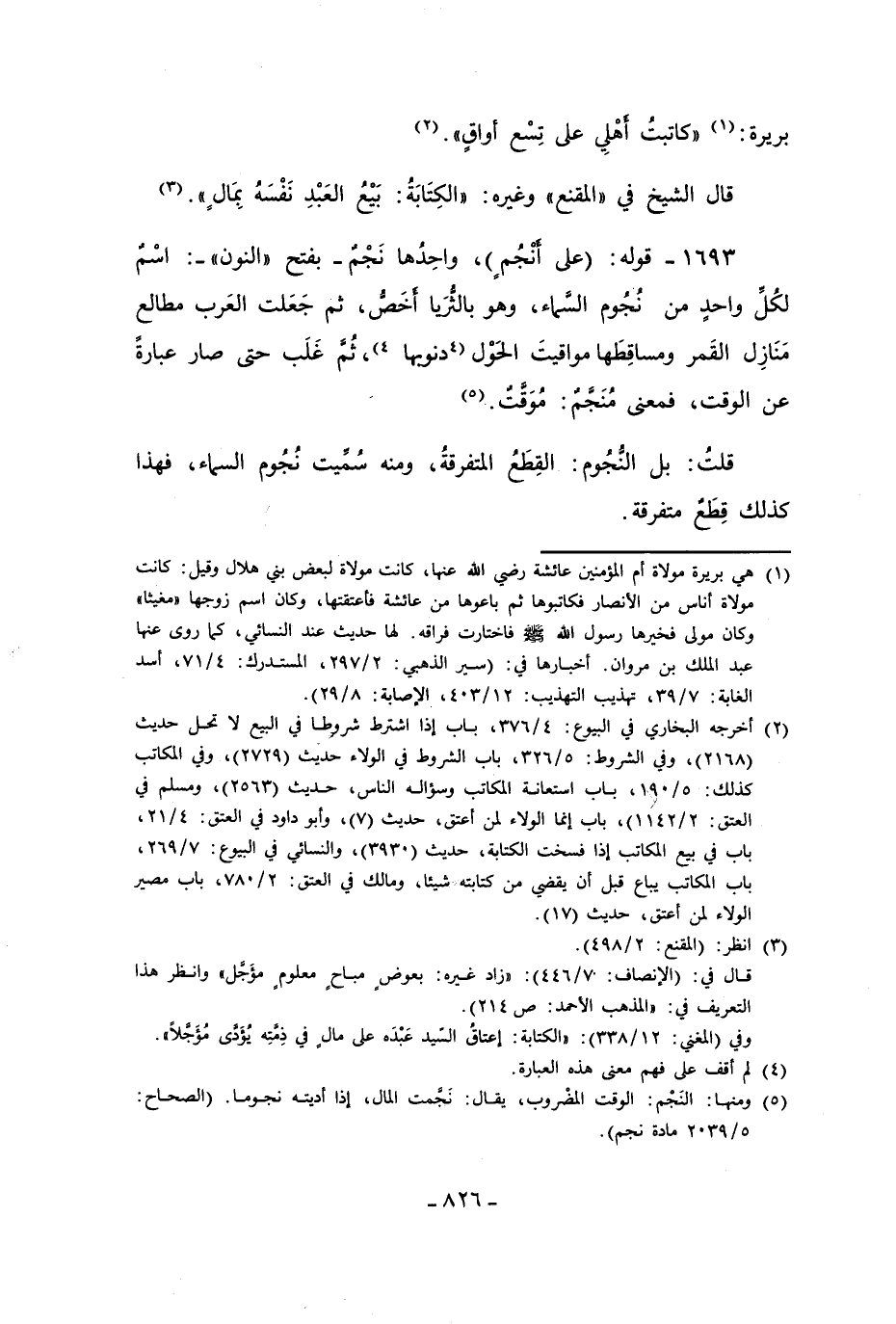 1693 - قوله: (على أنْجُمٍ)، واحِدُها نَجْمٌ - بفتح "النون" -: اسْمٌ لكُلِّ واحدٍ من نُجُوم السَّماء، وهو بالثُّرَيا أخَصُّ، ثم جَعَلت العَرب مطالع مَنَازِل القَمر ومساقِطَها مواقيتَ الحَوْل [دنويها] (¬4)، ثُمَّ غَلَب حتى صار عبارةً عن الوقت، فمعنى مُنَجَّمٌ: مُوَقَّتٌ. (¬5)