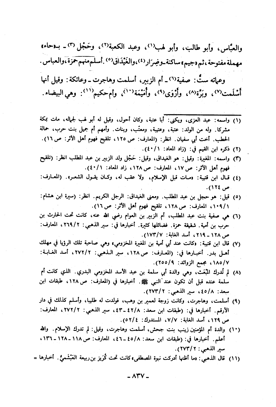 (¬6) هي صفية بنت عبد المطلب، أم الزبير بن العوام رضي الله عنه، كانت تحت الحارث بن حرب بن أمية. شقيقة حمزة. فضائلها كثيرة. أخبارها في: سير الذهبي: 2/ 269، المعارف: ص 128 - 219، أسد الغابة: 7/ 173).