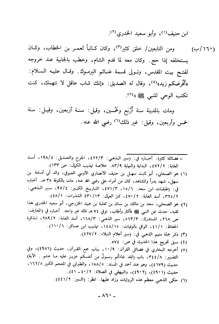 ومن التابعين خلق كثير (¬3)، وكان كاتبًا لعمر بن الخطاب، وكان يستخلفه إذا حج. وكان معه لما قدم الشام، وخطب بالجابية عند خروجه لفتح بيت المقدس، وتولى قسمة غنائم اليرموك. وقال عليه السلام: "أَفْرضكم زيد" (¬4)، وقال له الصديق: "إنك شاب عاقل لا نتهمك، كنت تكتب الوحي للنبي - صلى الله عليه وسلم - " (¬5).