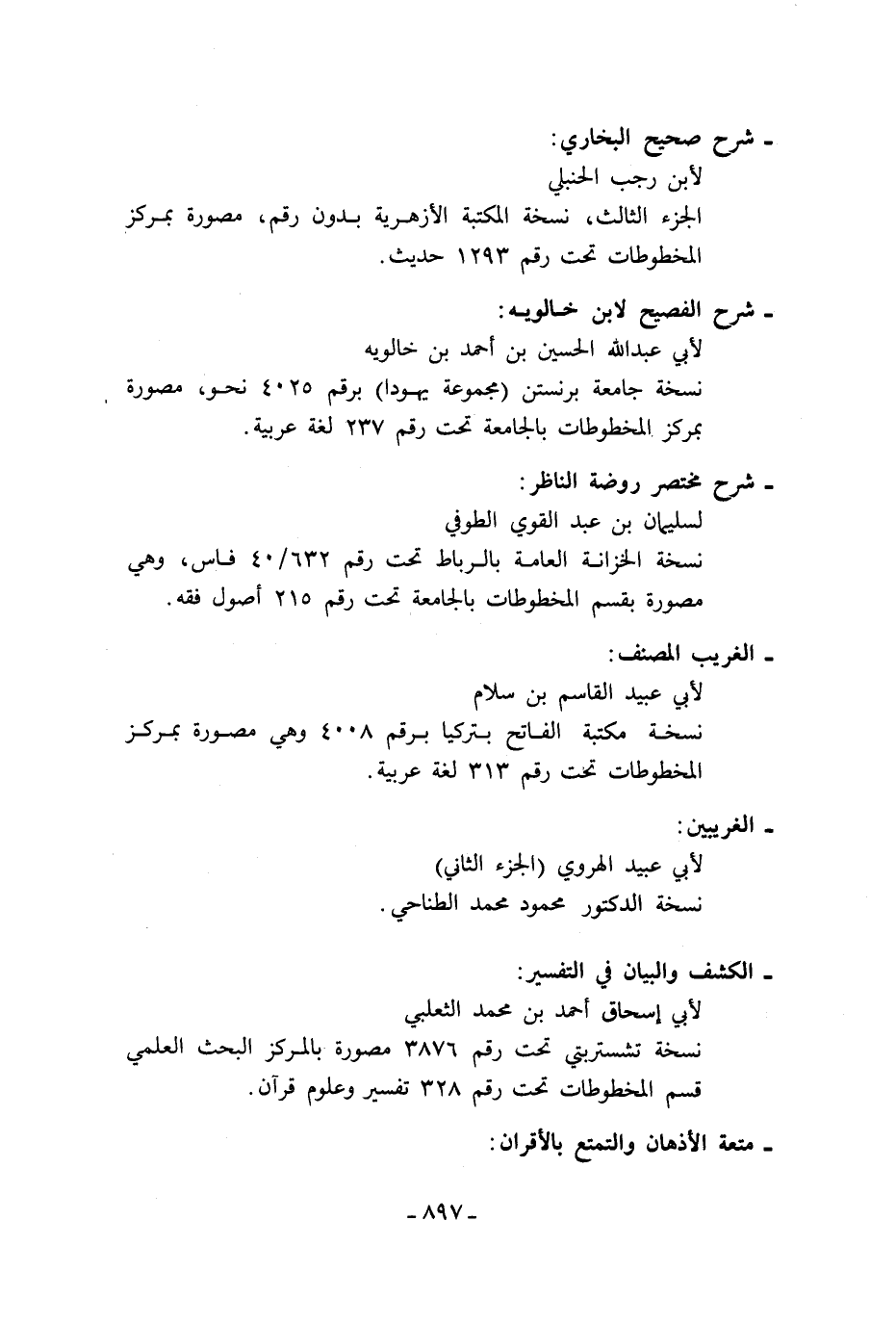نسخة جامعة برنستن (مجموعة يهودا) (1) برقم 4025 نحو، مصورة بمركز المخطوطات بالجامعة تحت رقم 237 لغة عربية.