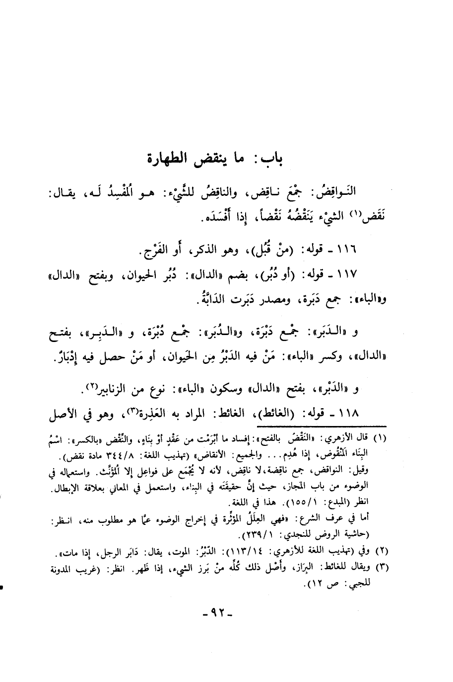 117 - قوله: (أو دُبُر)، بضم "الدال": دُبُر الحيوان، وبفتح "الدال" و"الباء": جمع دَبَرة، ومصدر دَبَرت الدَابَّةُ.