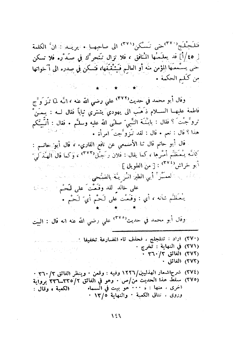 وَقَالَ أَبُو مُحَمَّد فِي حَدِيث عَليّ رَضِي الله عَنهُ انه لما تزوج فَاطِمَة عَلَيْهَا السَّلَام ذهب إِلَى يَهُودِيّ يَشْتَرِي ثيابًا فَقَالَ لَهُ: بِمن تزوجت فَقَالَ: بابنة النبى صلى الله عَلَيْهِ وَسلم. فَقَالَ: أنبيكم هَذَا قَالَ: نعم. قَالَ: لقد تزوجت امْرَأَة.