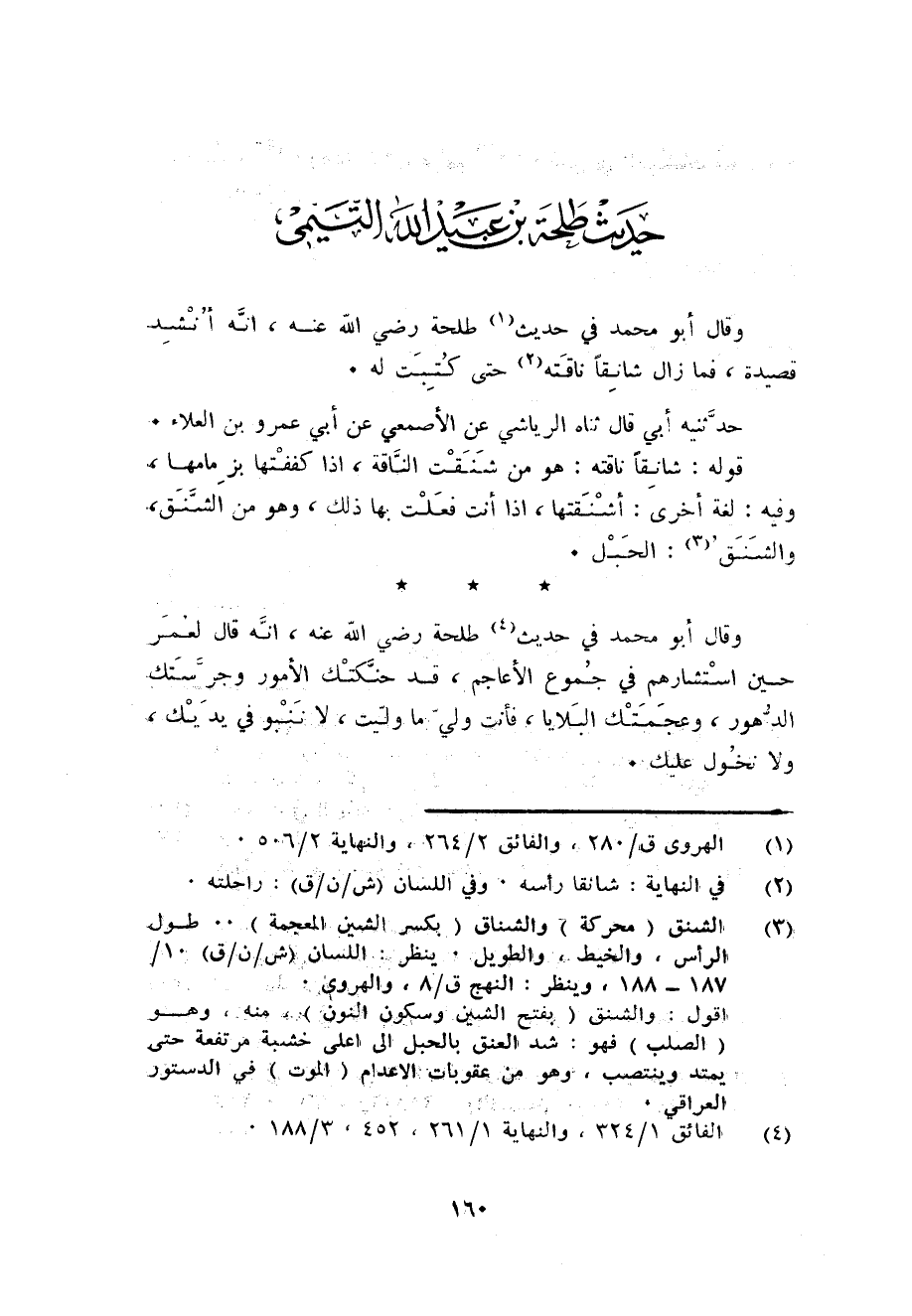 - حَدِيث طَلْحَة بن عبيد الله التَّيْمِيّ