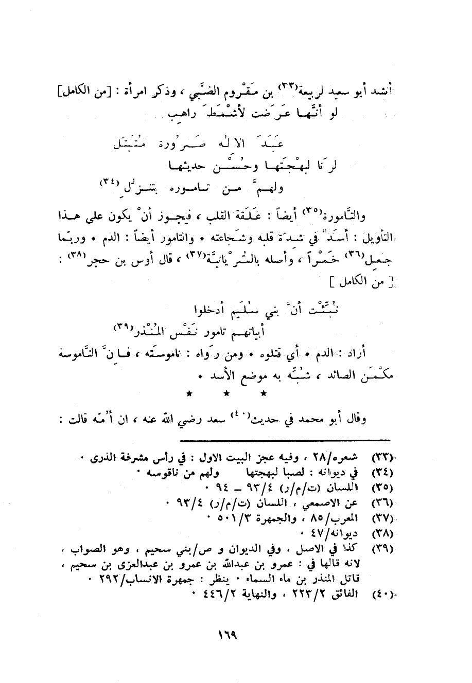 والتامورة أَيْضا: علقَة الْقلب فَيجوز أَن يكون على هَذَا التَّأْوِيل: اسد فِي شدَّة قلبه وشجاعته. والتامور أَيْضا: الدَّم. وَرُبمَا جعل خمرًا وَأَصله بالسُّرْيَانيَّة قَالَ أَوْس بن حجر: من الْكَامِل ... نبئت أَن بني سليم أدخلُوا ... أبياتهم تامور نفس الْمُنْذر ...