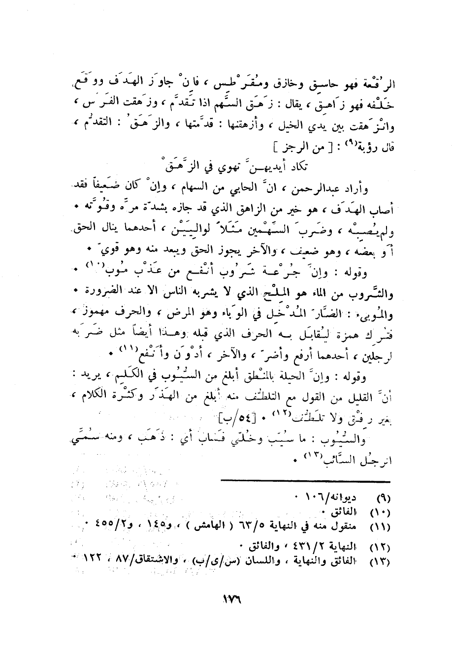 الرقعة فَهُوَ حاسق وخازق ومقرطس فَأن جَاوز الهدف وَوَقع خَلفه فَهُوَ زاهق يُقَال: زهق السهْم اذا تقدم وزهقت الْفرس وانزهقت بَين يَدي الْخَيل وأزهقتها: قدمتها والزهق: التَّقَدُّم قَالَ رؤبة: من الرجز ... تكَاد أَيْدِيهنَّ تهوى فِي الزهق ...