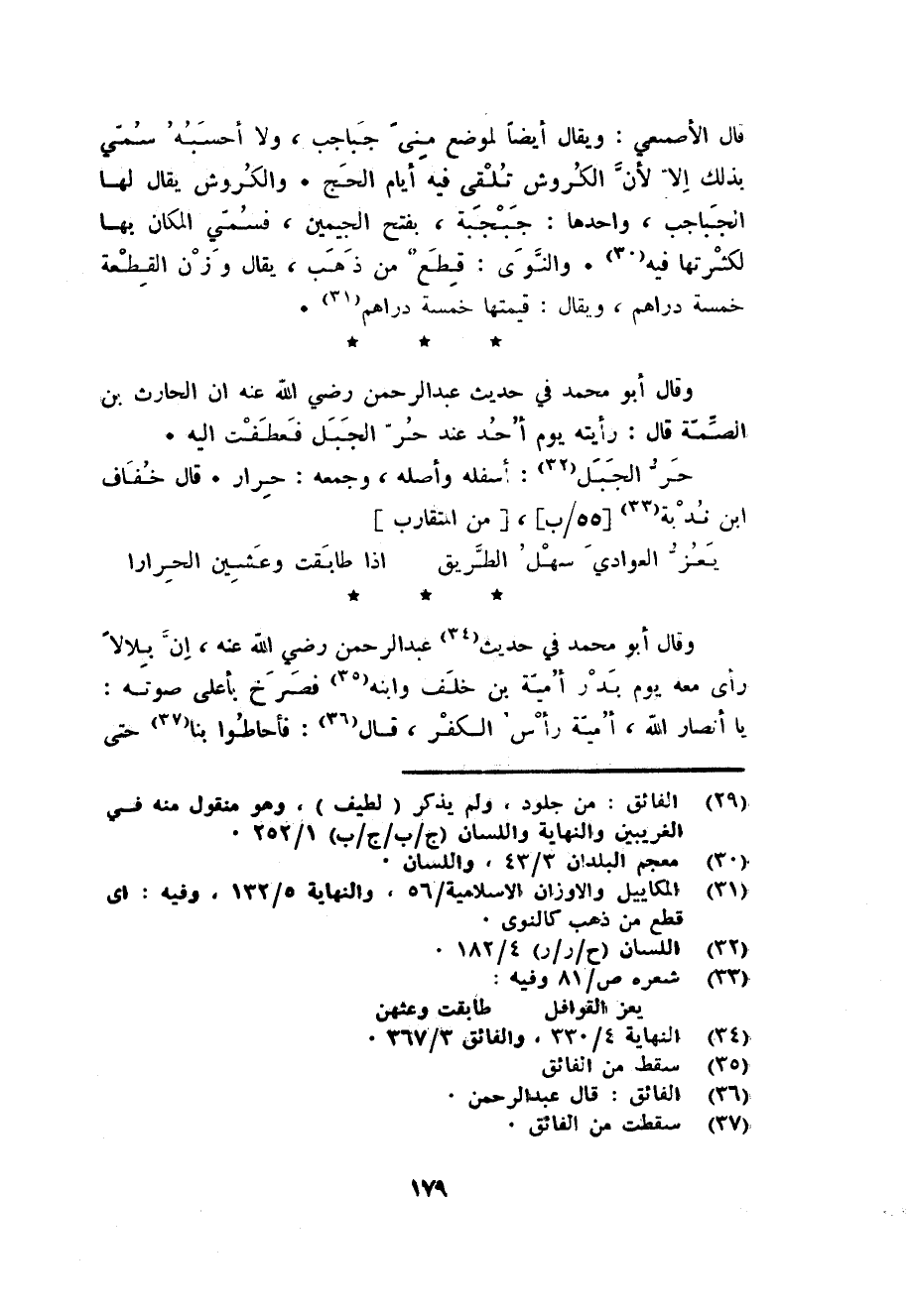 قَالَ الاصمعي: وَيُقَال أَيْضا لموْضِع منى جباجب وَلَا أحسببه سمي بذلك الا لِأَن الكروش تلقى فِيهِ أَيَّام الْحَج. والكروش يُقَال لَهَا الجباجب وَاحِدهَا: جبجبة بِفَتْح الجيمين فَسُمي الْمَكَان بهَا لكثرتها فِيهِ. والنوى: قطع من ذهب يُقَال وزن الْقطعَة خَمْسَة دَرَاهِم وَيُقَال: قيمتهَا خَمْسَة دَرَاهِم.