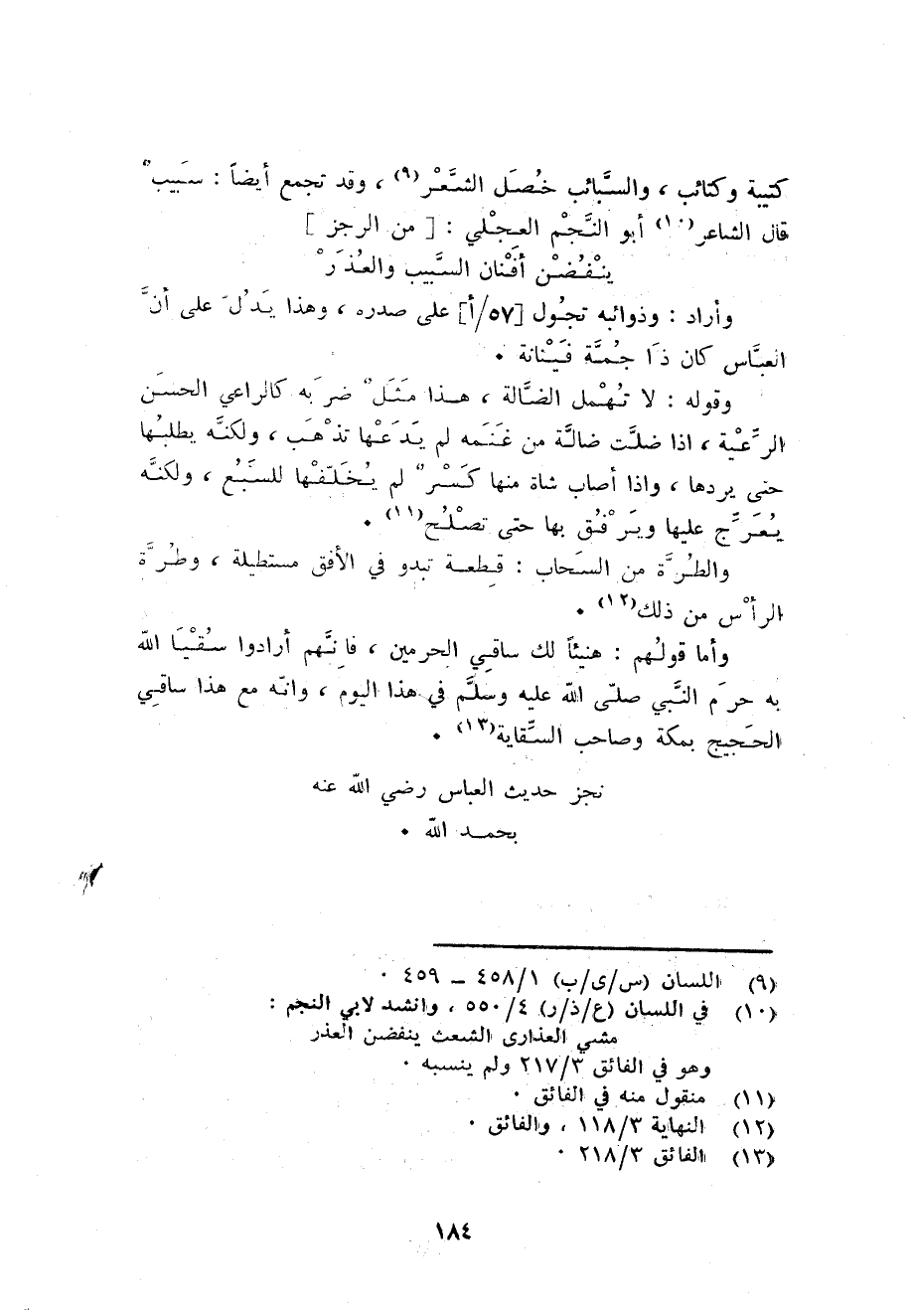 وَأما قَوْلهم: هَنِيئًا لَك ساقي الْحَرَمَيْنِ فانهم أَرَادوا سقيا الله بِهِ حرم النبى صلى الله عَلَيْهِ وَسلم فِي هَذَا الْيَوْم وانه مَعَ هَذَا ساقي الحجيج بِمَكَّة وصاحبة السِّقَايَة. نجز حَدِيث الْعَبَّاس رَضِي الله عَنهُ. بِحَمْد الله.