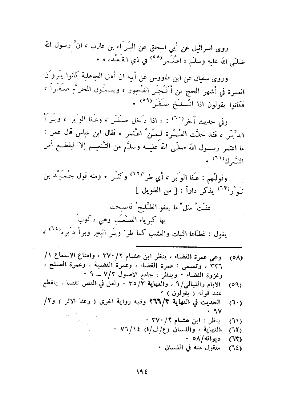 وَفِي حَدِيث آخر: اذا دخل صفر وَعَفا الْوَبر وبرأ الدبر فقد حلت الْعمرَة لمن اعْتَمر فَقَالَ ابْن عَبَّاس قَالَ عمر: مَا اعْتَمر رَسُول الله صلى الله عَلَيْهِ وَسلم من التَّنْعِيم الا ليقطع أَمر الشّرك.