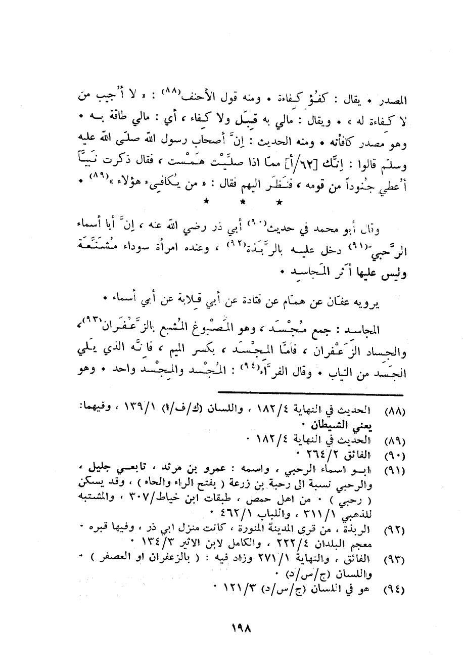 وَقَالَ ابو مُحَمَّد فِي حَدِيث أَبى ذَر رَضِي الله عَنهُ ان ابا اسماء الرَّحبِي دخل عَلَيْهِ بالربذة وَعِنْده امْرَأَة سَوْدَاء مشنعة وَلَيْسَ عَلَيْهَا أثر المجاسد.