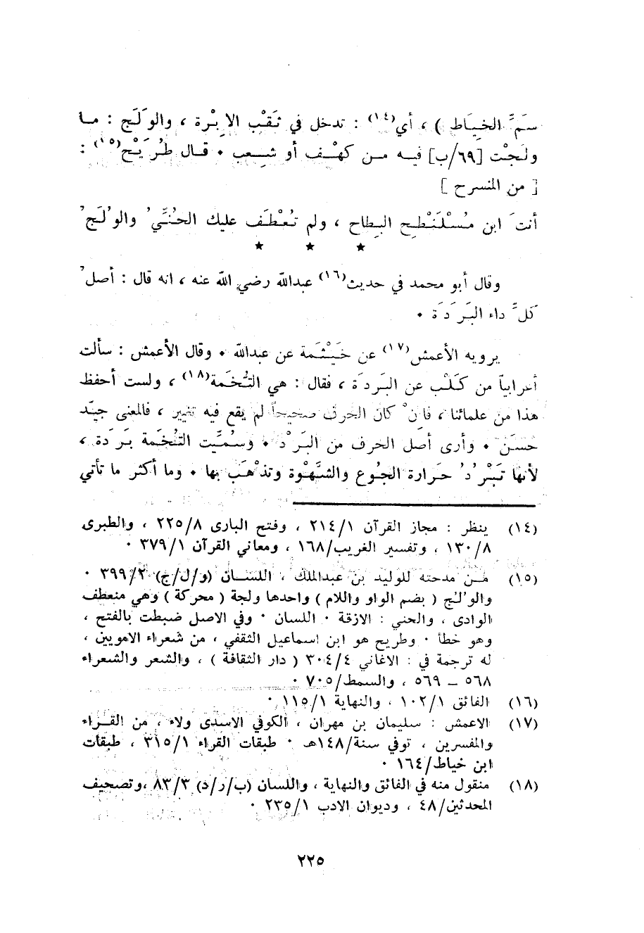 يرويهِ الْأَعْمَش عَن خَيْثَمَة عَن عبد الله. وَقَالَ الْأَعْمَش: سَأَلت اعرابيا من كلب عَن الْبردَة فَقَالَ: هِيَ التُّخمَة وَلست أحفظ هَذَا من عُلَمَائِنَا فان كَانَ الْحَرْف صَحِيحا لم يَقع فَهِيَ تَغْيِير فَالْمَعْنى جيد حسن. وَأرى أصل الْحَرْف من الْبرد. وَسميت التُّخمَة بردة لِأَنَّهَا تبرد حرارة الْجُوع والشهوة وَتذهب بهَا. وَمَا أَكثر مَا تَأتي