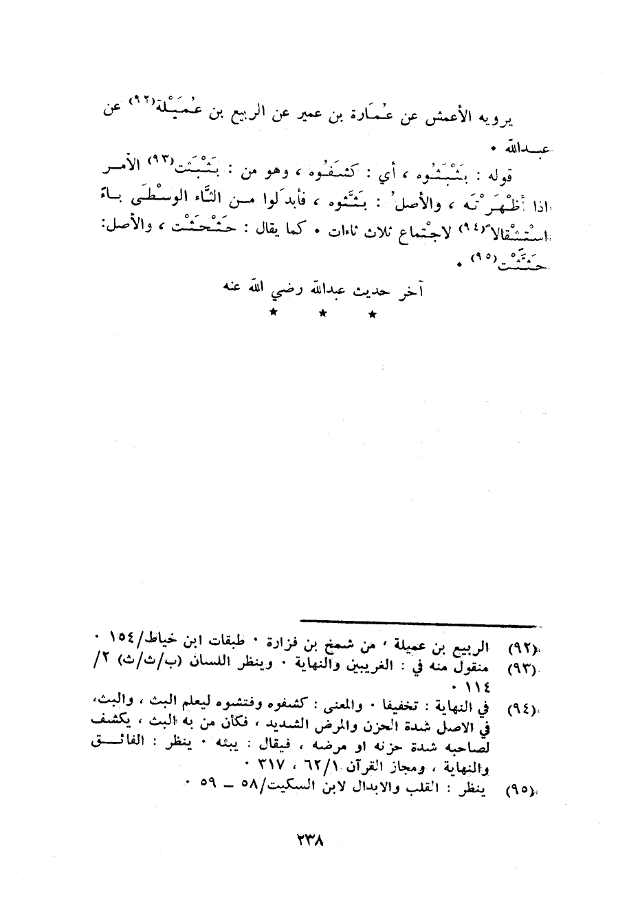 قَوْله: بثبثوه أَي: كشفوه وَهُوَ من: بثبثت الْأَمر اذا أظهرته وَالْأَصْل: بثثوه فأبدلوها من الثَّاء الْوُسْطَى بَاء استثقالا لِاجْتِمَاع ثَلَاث ثاءات. كَمَا يُقَال: حثحثت وَالْأَصْل: حثثت.