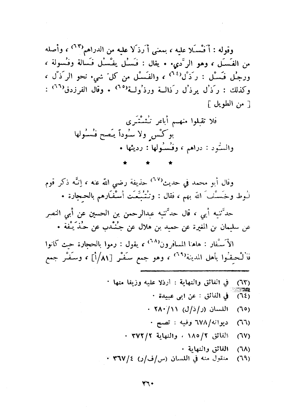 0 - وَقَوله: افسلا عَلَيْهِ بِمَعْنى أرذلا عَلَيْهِ من الدَّرَاهِم وَأَصله من الفسل وَهُوَ الرَّدِيء. يُقَال: فسل يفسل فسالة وفسولة وَرجل فسل: رذل والفسل من كل شَيْء نَحْو الرذل وَكَذَلِكَ: رذل يرذل رذالة ورذولة. وَقَالَ الفرزدق: من الطَّوِيل ... فَلَا تقبلُوا مِنْهُم أباعر تشترى ... بوكس وَلَا سُودًا يَصح فسولها ...