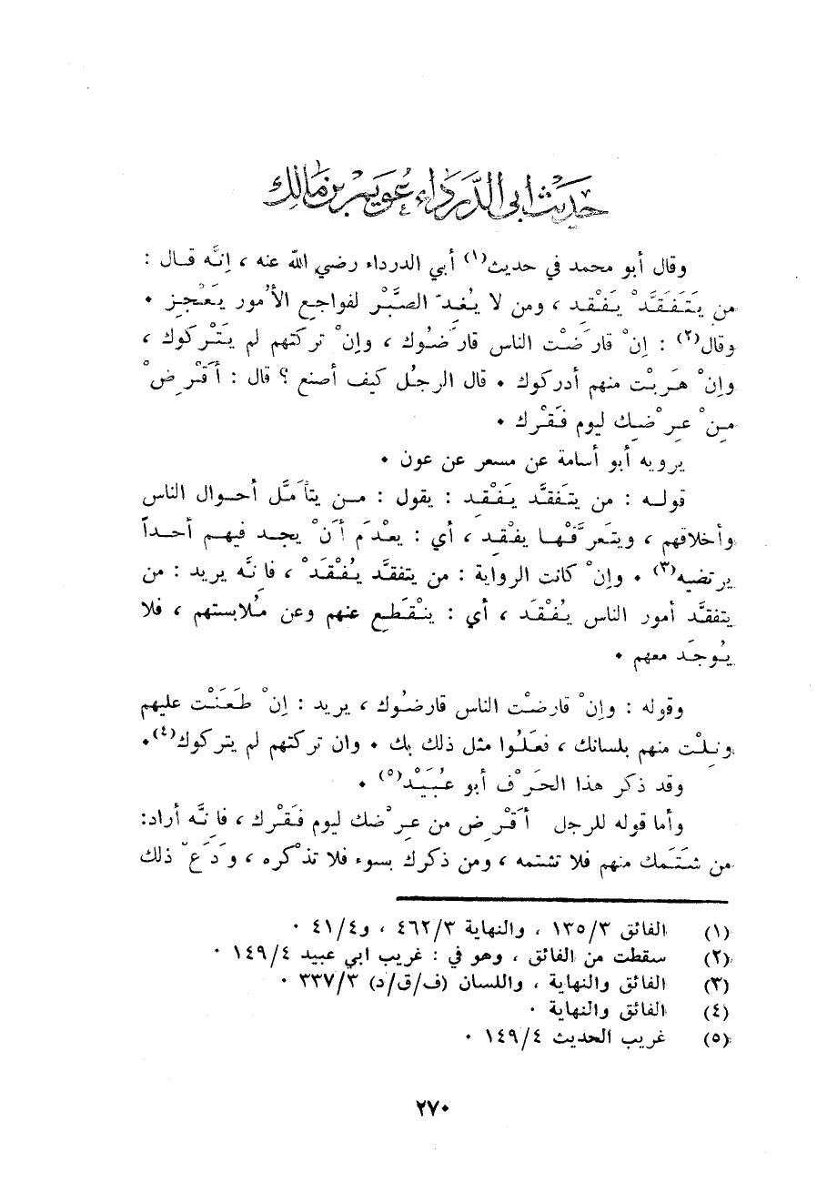- حَدِيث ابي الدَّرْدَاء عُوَيْمِر بن مَالك