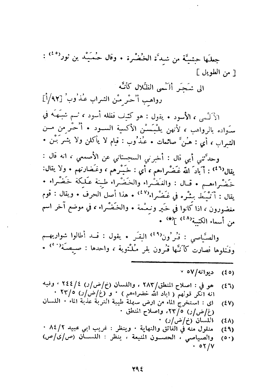 جعلهَا حبشية من شدَّة الخضرة. وَقَالَ حميد بن ثَوْر: من الطَّوِيل ... الى شجر ألمى الظلال كَأَنَّهُ ... رواهب أخر من الشَّرَاب عذوب ...