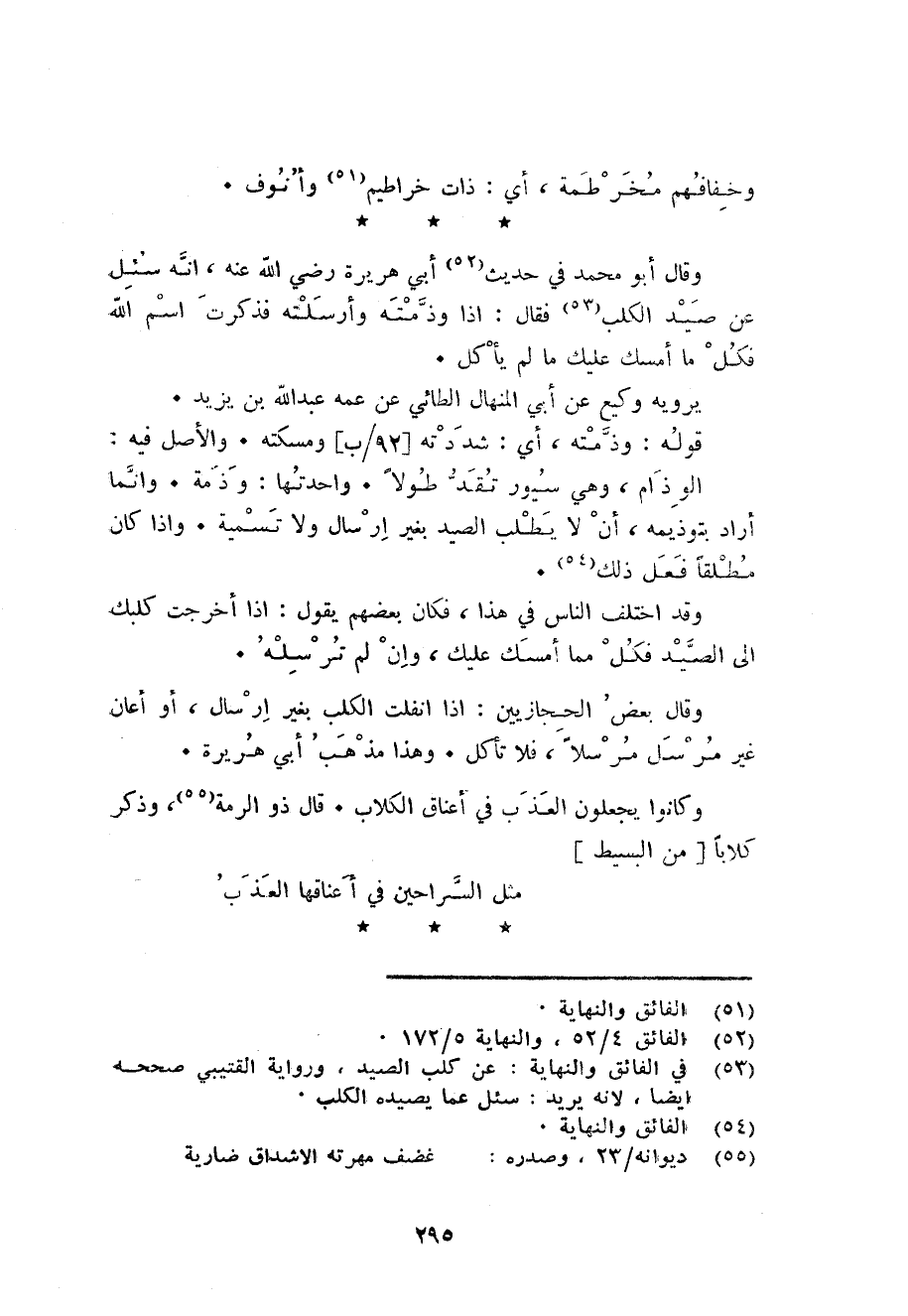 قَوْله: وذمته أَي: شددته ومسكته. وَالْأَصْل فِيهِ: الوذام وَهِي سيور تقد طولا. واحدتها: وَذمَّة. وانما أَرَادَ بتوذيمه أَن لَا يطْلب الصَّيْد بِغَيْر ارسال وَلَا تَسْمِيَة. واذا كَانَ مُطلقًا فعل ذَلِك.