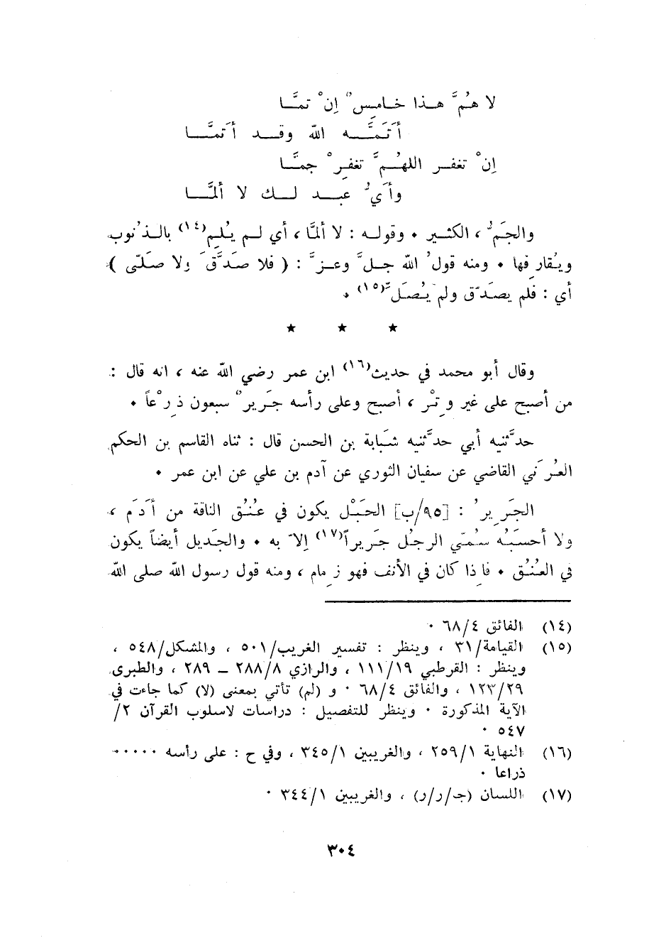 وَقَالَ أَبُو مُحَمَّد فِي حَدِيث ابْن عمر رَضِي الله عَنهُ انه قَالَ: من اصبح على غير وتر أصبح على رَأسه جرير سَبْعُونَ ذرعا