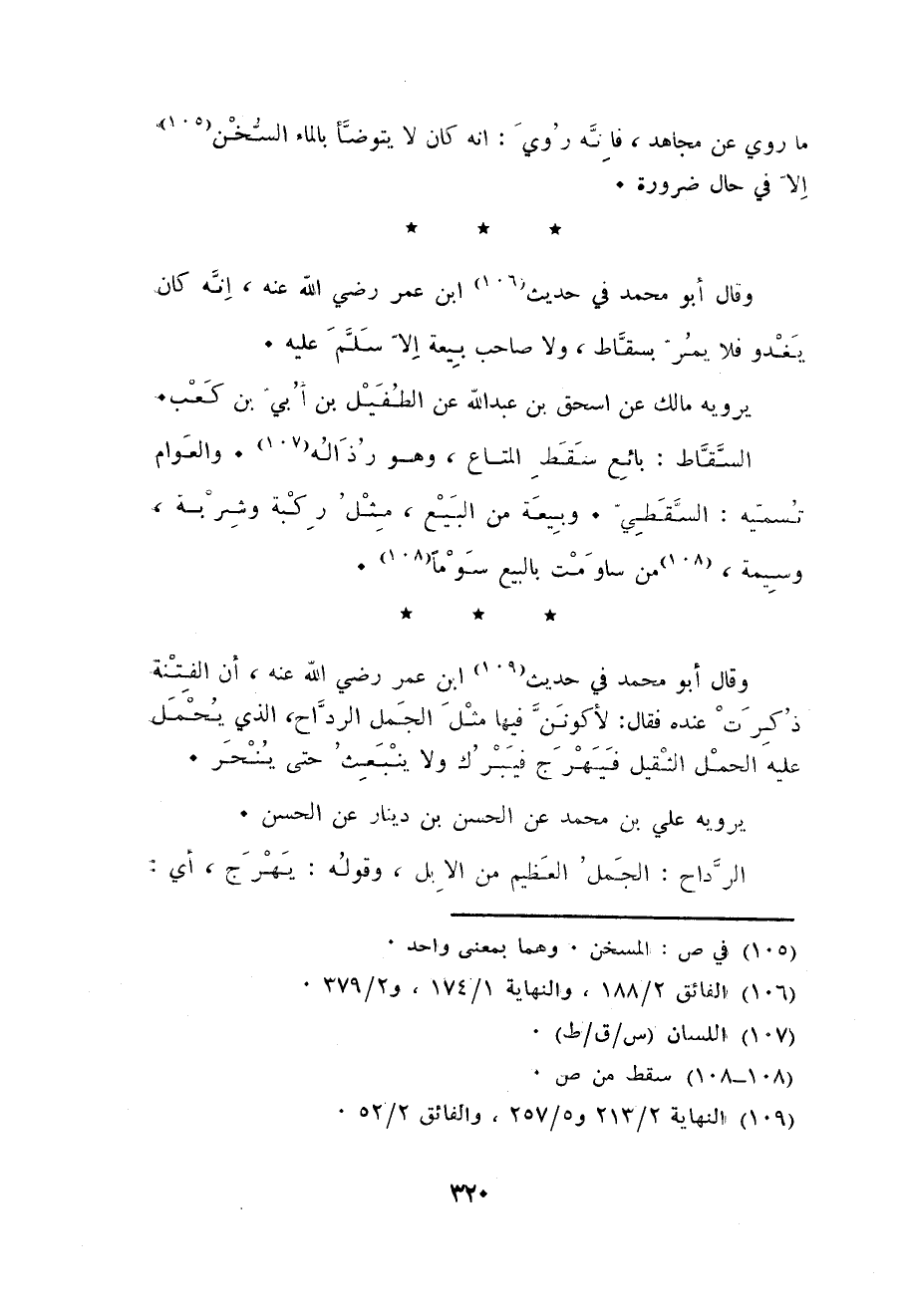 وَقَالَ أَبُو مُحَمَّد فِي حَدِيث ابْن عمر رَضِي الله عَنهُ أَن الْفِتْنَة ذكرت عِنْده فَقَالَ: لأكونن فِيهَا مثل الْجمل الرداح الَّذِي يحمل عَلَيْهِ الْحمل الثقيل فيهرج فيبرك وَلَا ينبعث حَتَّى ينْحَر.