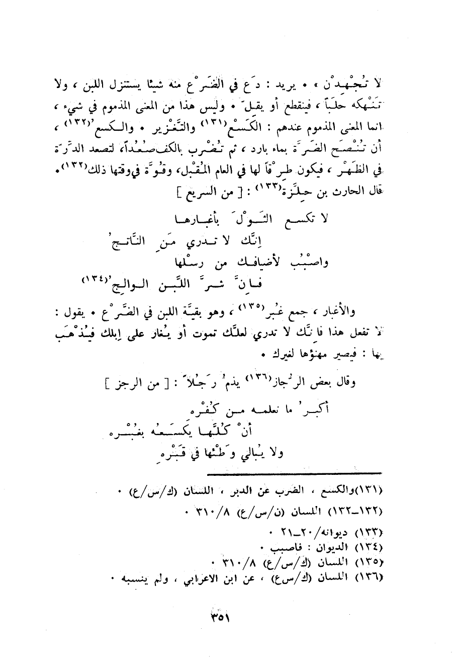 قَالَ الْحَارِث بن حلزة: من السَّرِيع ... لَا تكسع الثول بأغبارها ... انك لَا تَدْرِي من الناتج ...