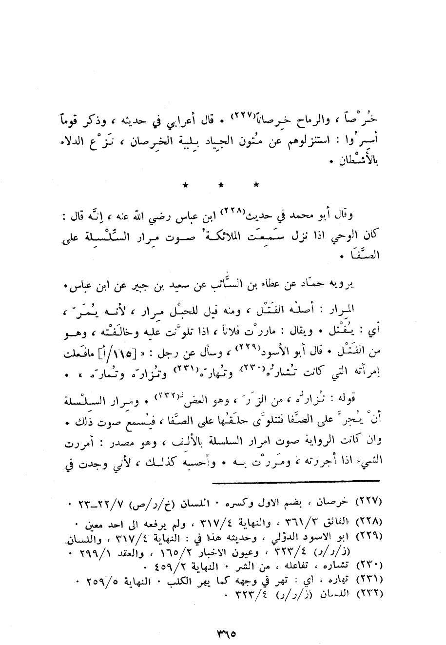 وَقَالَ أَبُو مُحَمَّد فِي حَدِيث ابْن عَبَّاس رَضِي الله عَنهُ انه قَالَ: كَانَ الْوَحْي اذا نزل سَمِعت الْمَلَائِكَة صَوت مرار السلسلة على الصَّفَا.