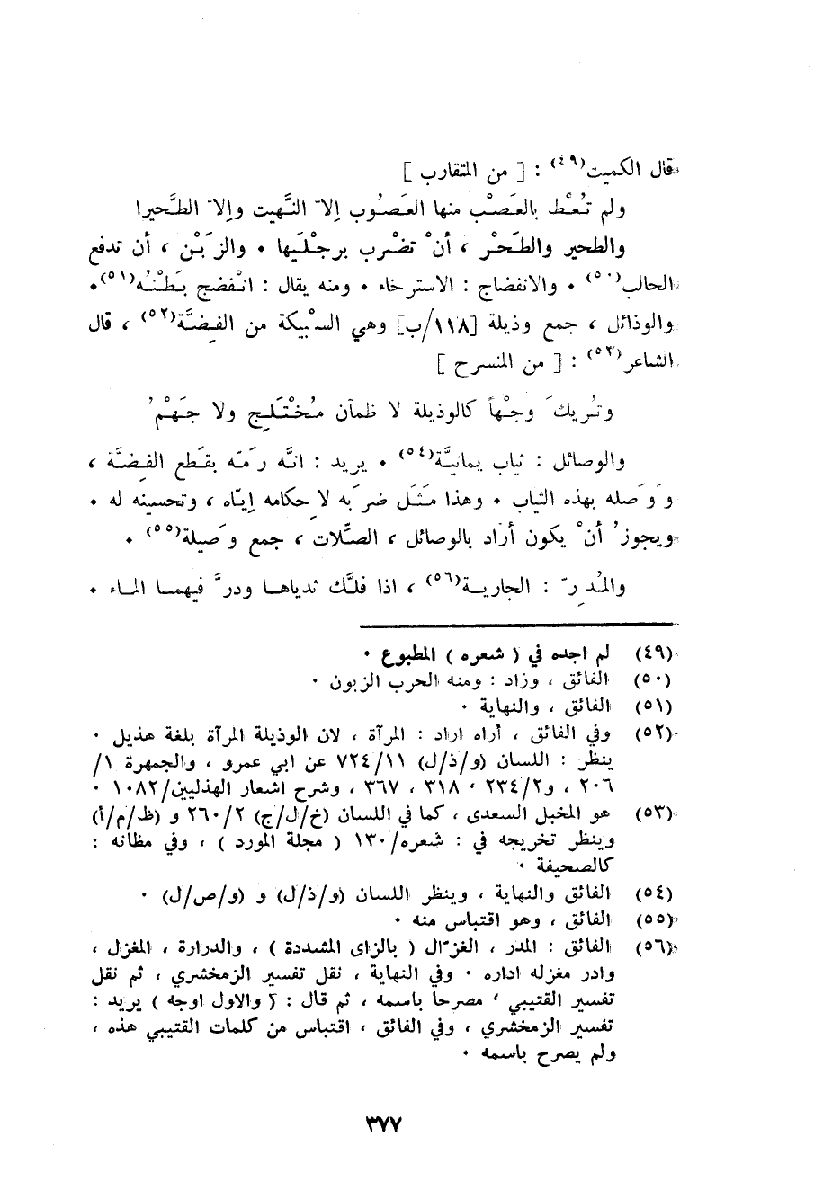 377 - قَالَ الْكُمَيْت: من المتقارب ... وَلم تعط بالعصب مِنْهَا العصوب الا النهيت والا الطحيرا ...