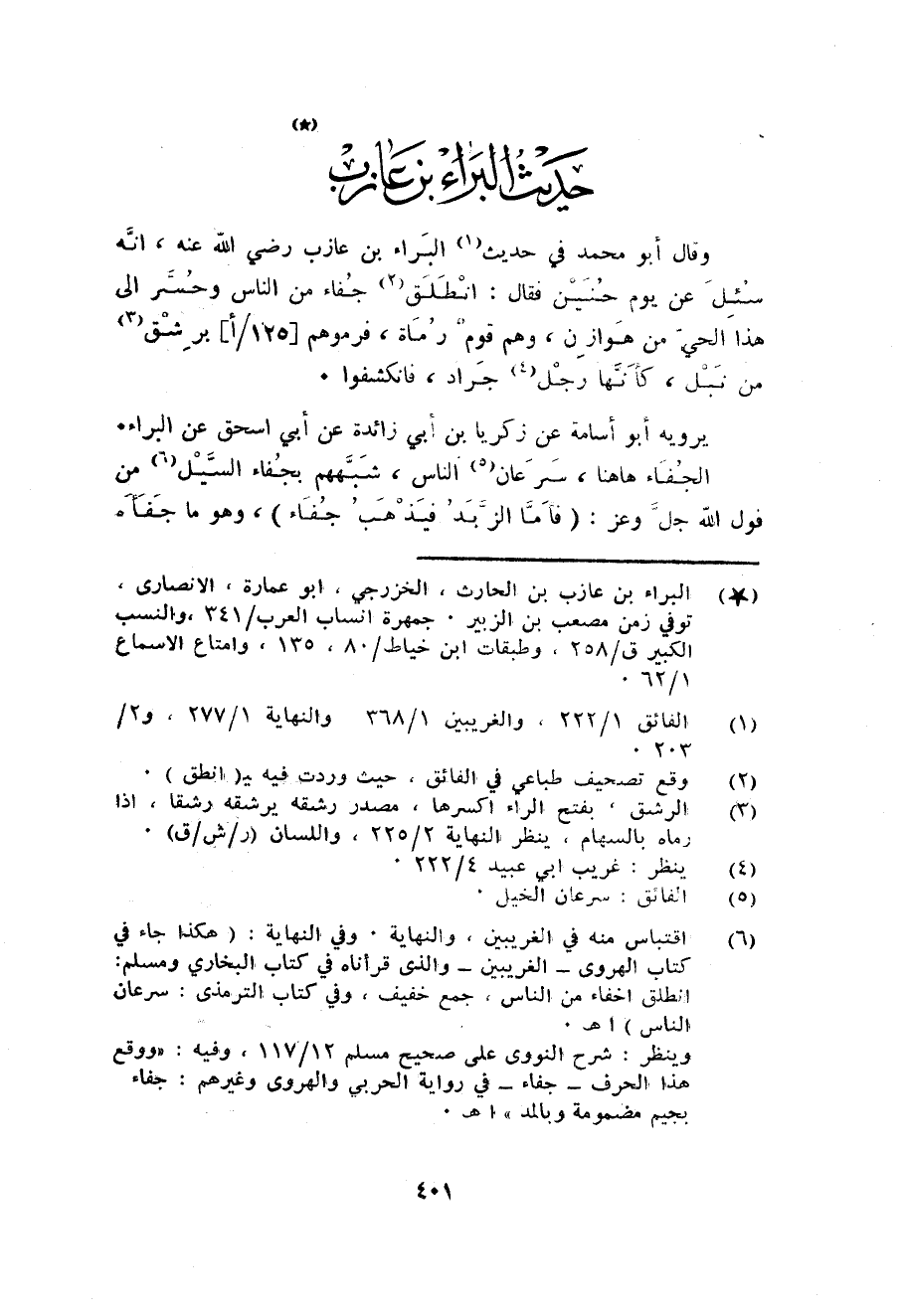 يرويهِ أَبُو أُسَامَة عَن زَكَرِيَّا بن أبي زَائِدَة عَن أبي اسحق عَن الْبَراء. الْجفَاء هَاهُنَا سرعَان النَّاس شبههم بجفاء السَّيْل من قَول الله جلّ وَعز: {فَأَما الزّبد فَيذْهب جفَاء} وَهُوَ مَا جفأه.