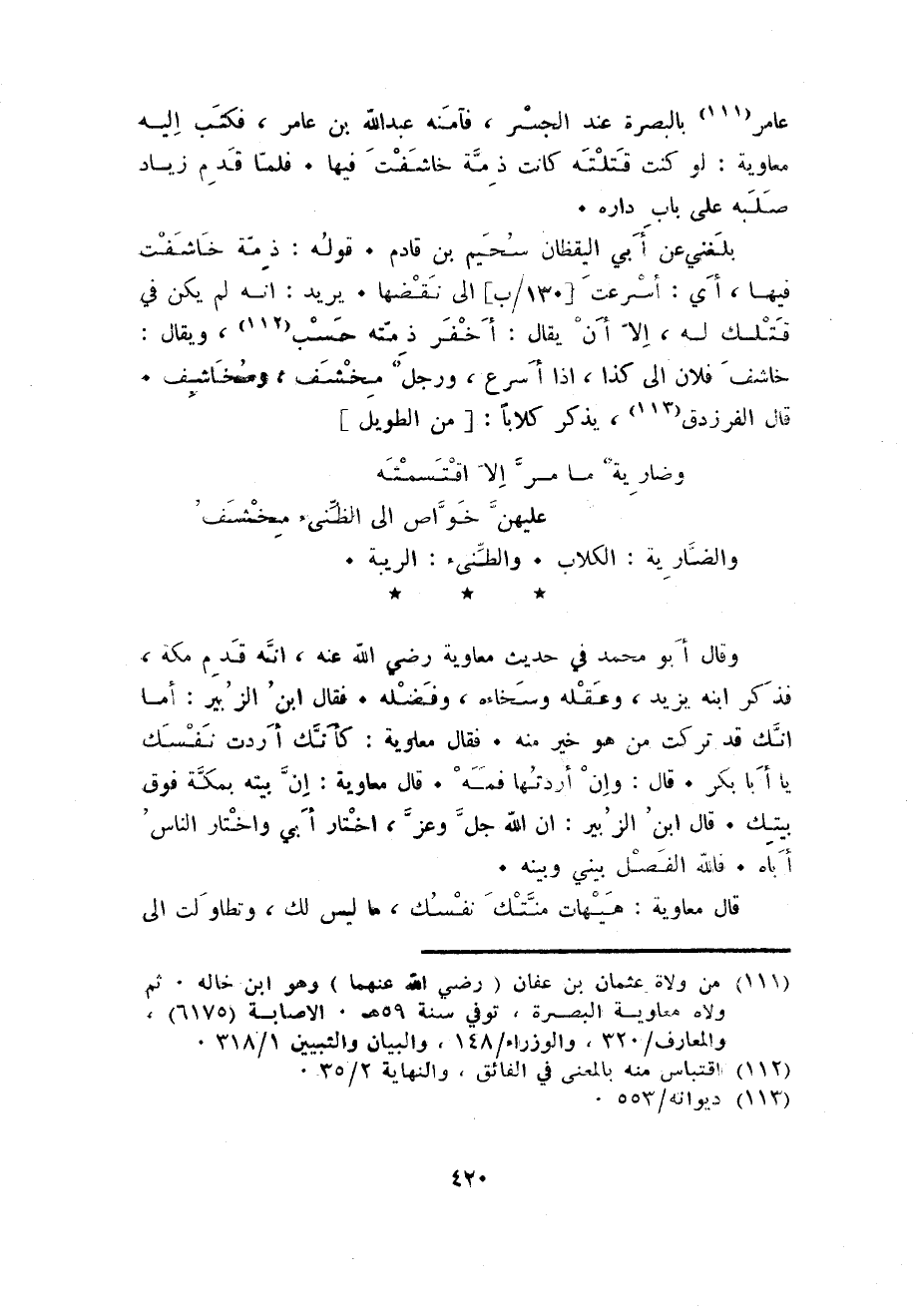 بَلغنِي عَن أبي الْيَقظَان سحيم بن قادم. قَوْله: ذمَّة خاشفت فِيهَا أَي: أسرعت الى نقضهَا. يُرِيد: انه لم يكن فِي قَتلك لَهُ الا أَن يُقَال: أَخْفَر ذمَّته حسب وَيُقَال: خاشف فلَان الى كَذَا اذا أسْرع وَرجل مخشف ومخاشف قَالَ الفرزدق يذكر كلابا: من الطَّوِيل ... وضارية مَا مر الا اقتسمته ... عَلَيْهِنَّ خَواص الى الظنىء مخشف ...