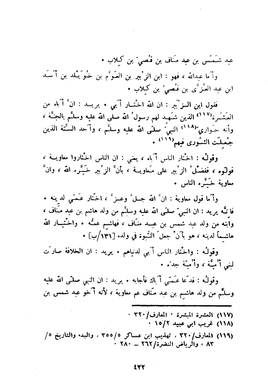 وَأما قَول مُعَاوِيَة: ان الله جلّ وَعز اخْتَار عمي لدينِهِ. فانه يُرِيد: ان النبى صلى الله عَلَيْهِ وَسلم من ولد هَاشم بن عبد منَاف وَابْنه من ولد عبد شمس بن عبد منَاف فهاشم عَمه. وَاخْتِيَار الله هاشما لدينِهِ هُوَ بِأَن جعل النُّبُوَّة فِي وَلَده.