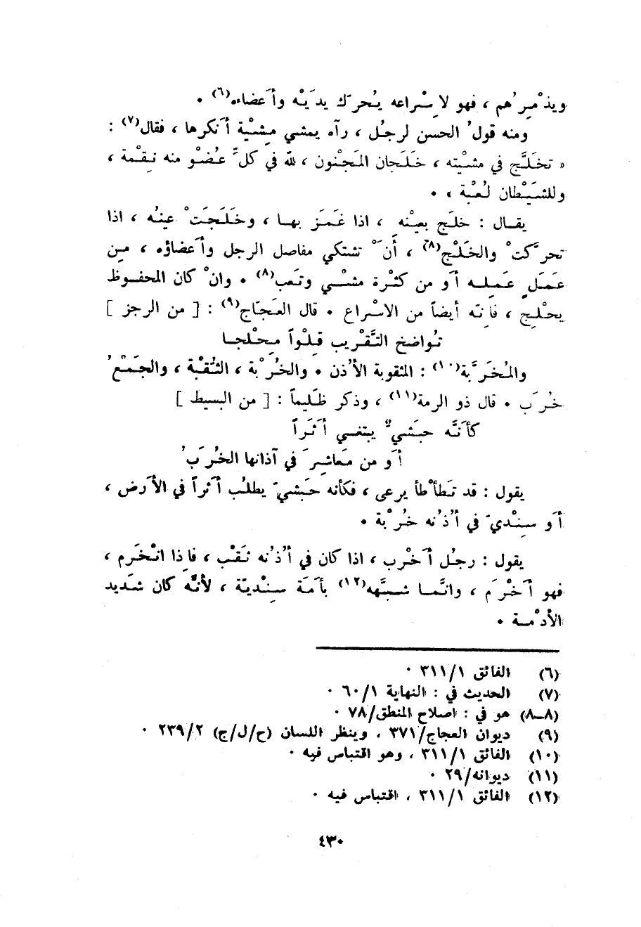 وَمِنْه قَول الْحسن لرجل رَآهُ يمشي مشْيَة أنكرها فَقَالَ: تخلج فِي مشيته خلجان الْمَجْنُون لله فِي كل غضو مِنْهُ نقمة وللشيطان لعبة.