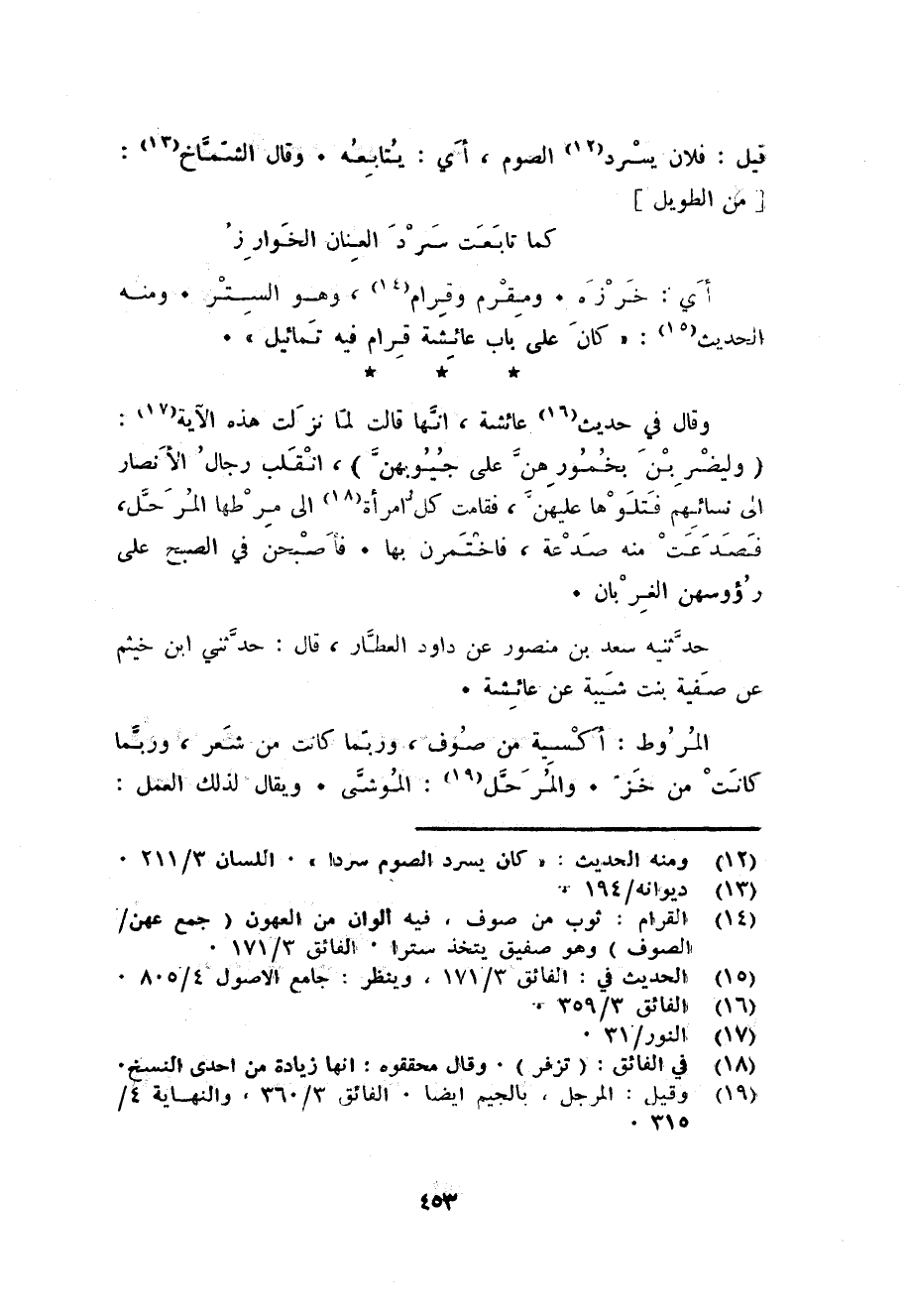 قيل: فلَان يسْرد الصَّوْم أَي: يُتَابِعه. وَقَالَ الشماخ: من الطَّوِيل ... كَمَا تابعت سرد الْعَنَان الخوارز ...