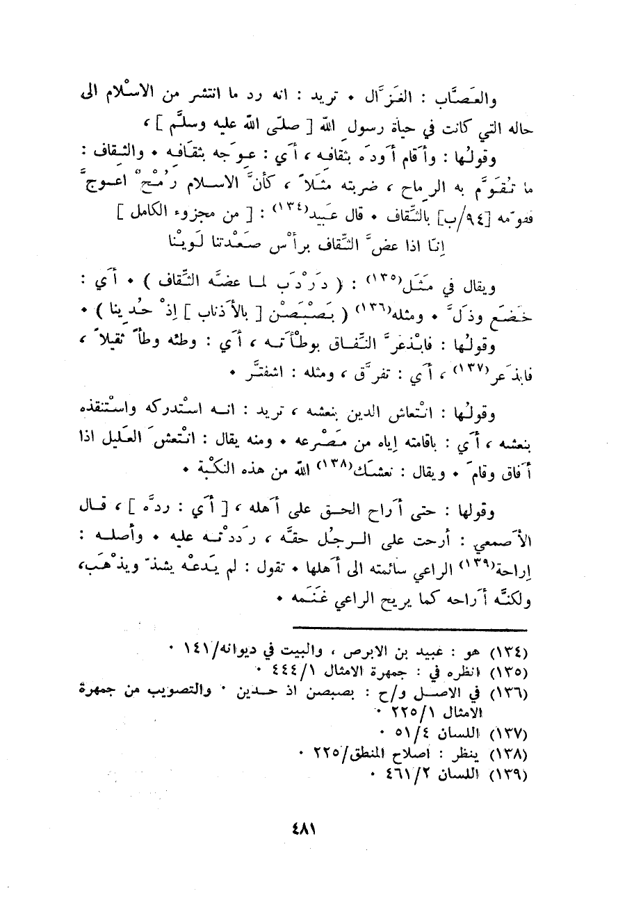 والعصاب: الغزال. تُرِيدُ: انه ورد مَا انْتَشَر من الاسلام الى حَاله الَّتِي كَانَت فِي حَيَاة رَسُول الله صلى الله عَلَيْهِ وَسلم.