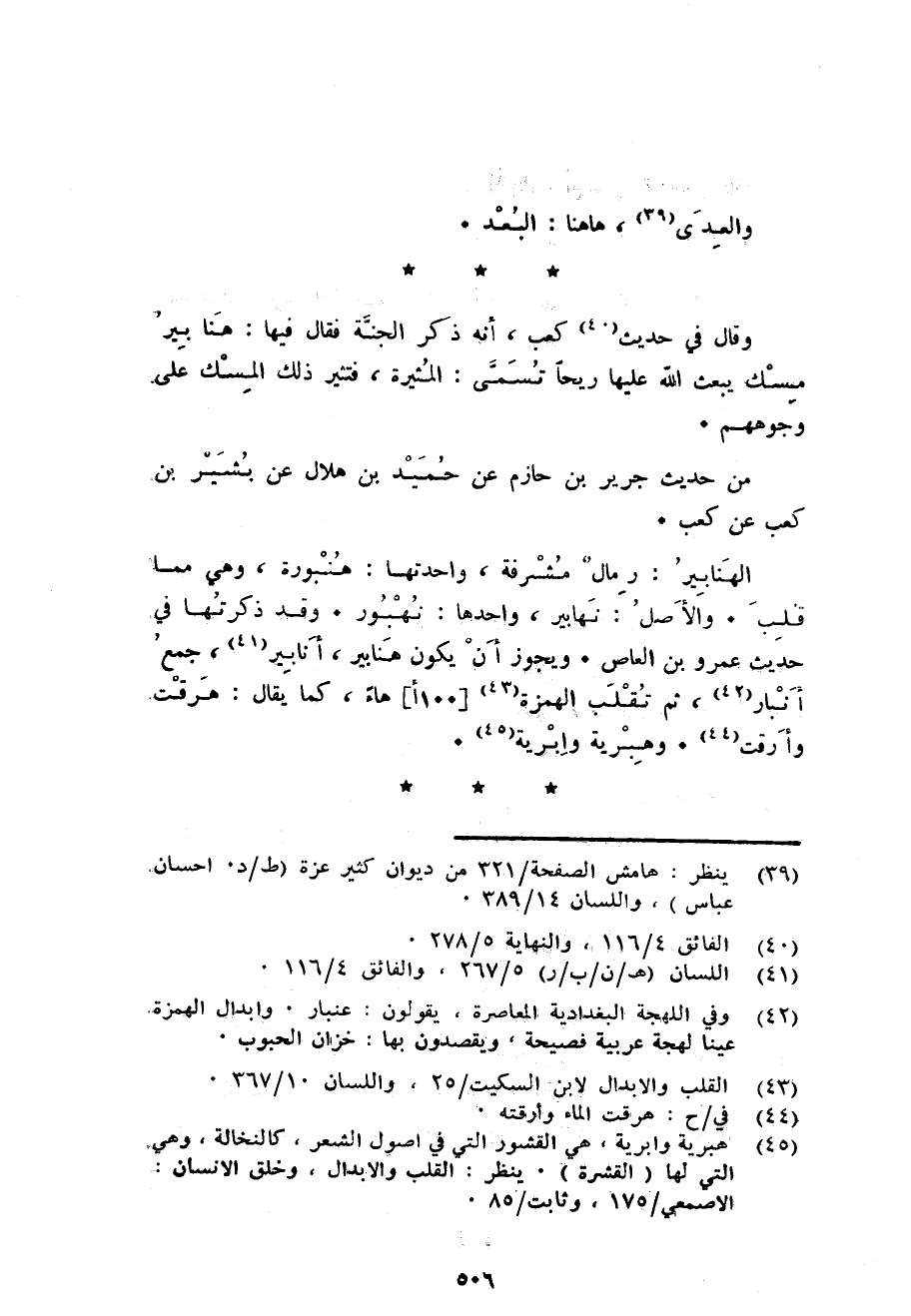 وَقَالَ فِي حَدِيث كَعْب أَنه ذكر الْجنَّة فَقَالَ فِيهَا: هُنَا بير مسك يبْعَث الله عَلَيْهَا ريحًا تسمى: المثيرة فتثير ذَلِك الْمسك على وجوهم.