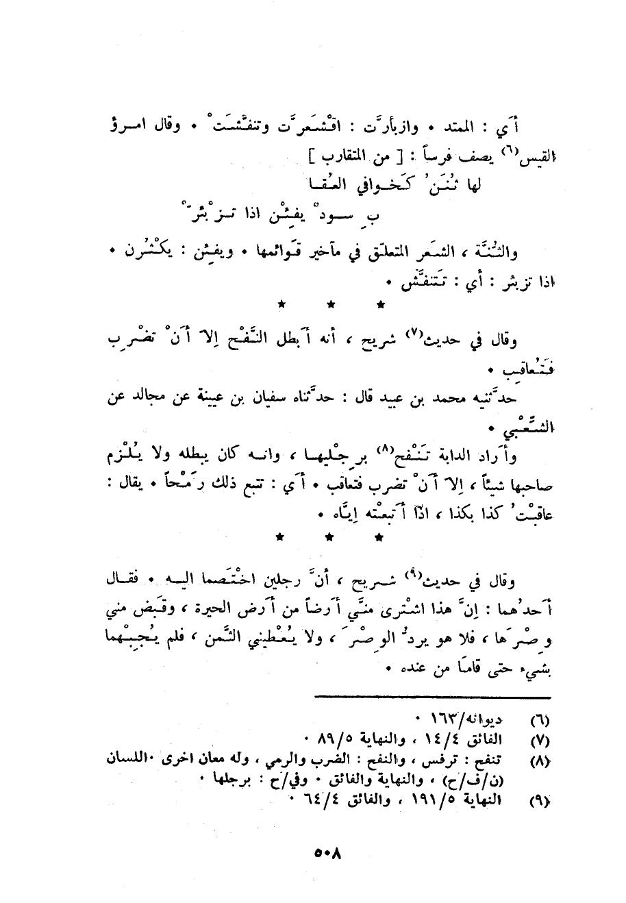 والثنة الشّعْر الْمُتَعَلّق فِي مآخير قَوَائِمهَا. ويفئن: يكثرن. اذا تزبئر: أَي تتنفش.