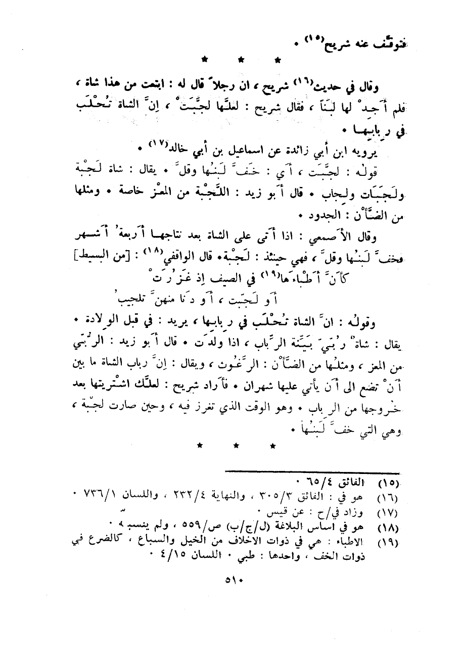 وَقَالَ فِي حَدِيث شُرَيْح أَن رجلا قَالَ لَهُ: ابتعت من هَذَا شَاة فَلم أجد لَهَا لَبَنًا فَقَالَ شُرَيْح: لَعَلَّهَا لجبت ان الشَّاة تحلب فِي ربابها.