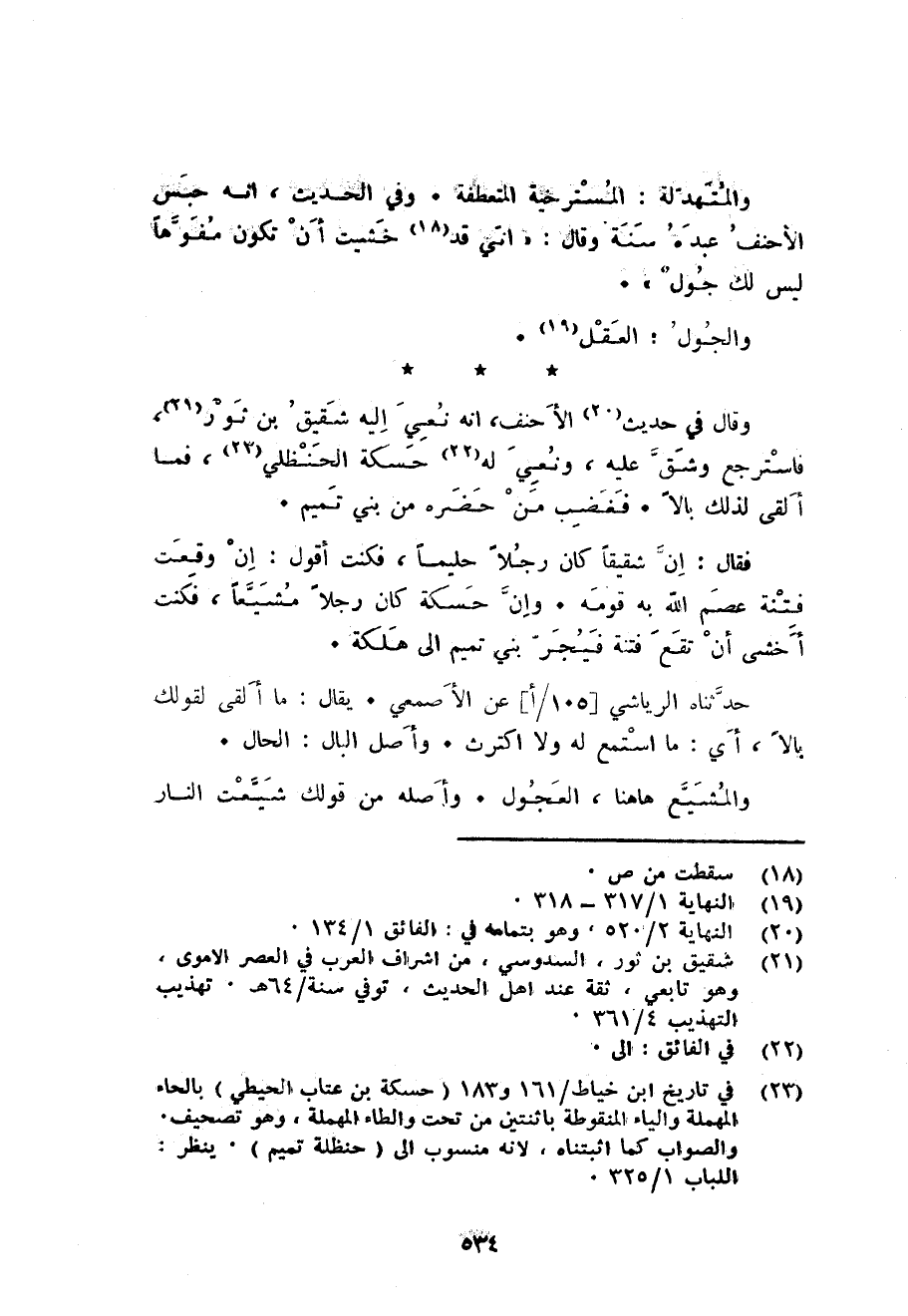 وَقَالَ فِي حَدِيث الْأَحْنَف انه نعي اليه شَقِيق بن ثَوْر فَاسْتَرْجع وشق عَلَيْهِ ونعي لَهُ حسكة الْحَنْظَلِي فَمَا ألْقى لذَلِك بَالا. فَغَضب من حَضَره من بني تَمِيم.