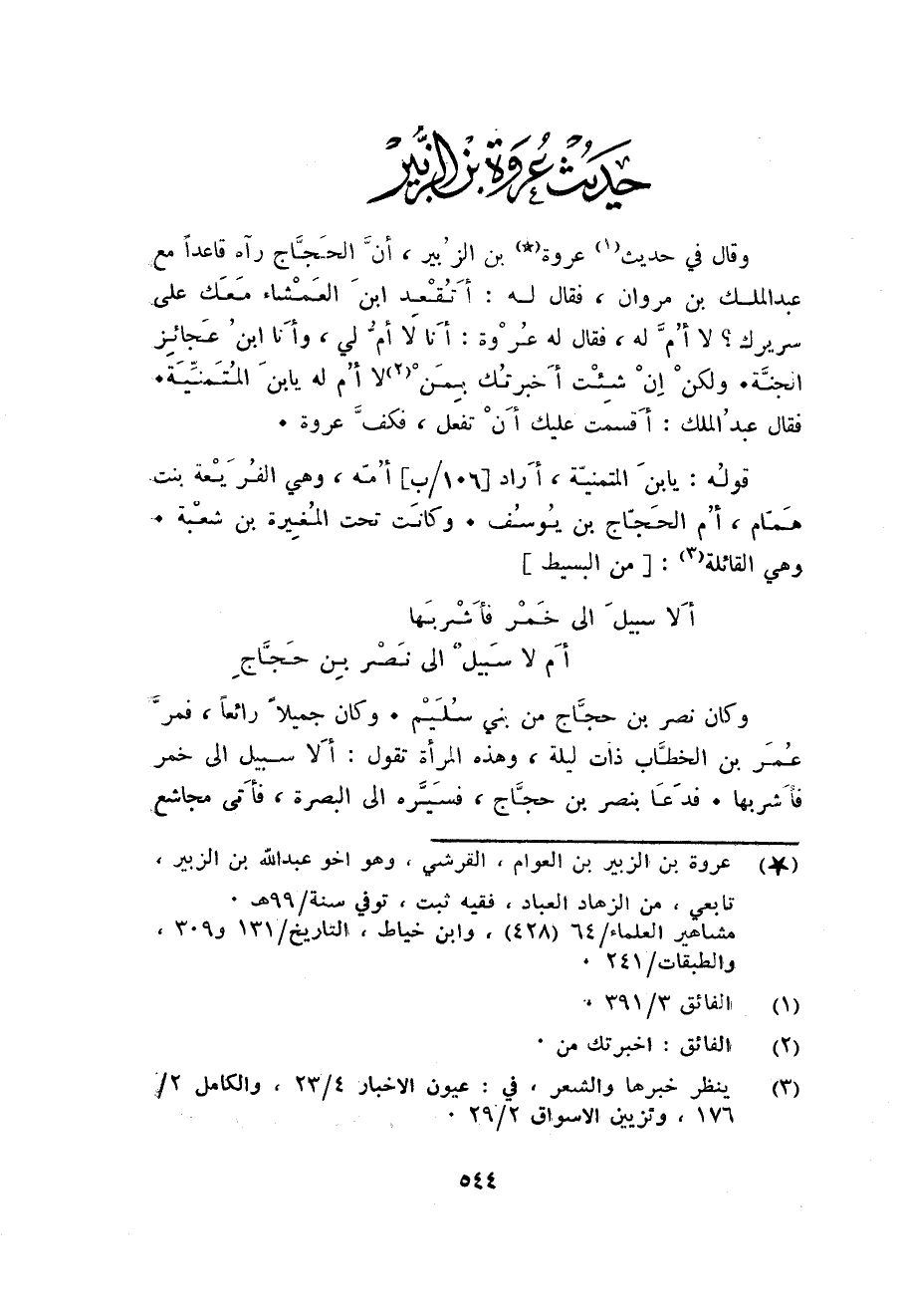 - حَدِيث عُرْوَة بن الزبير