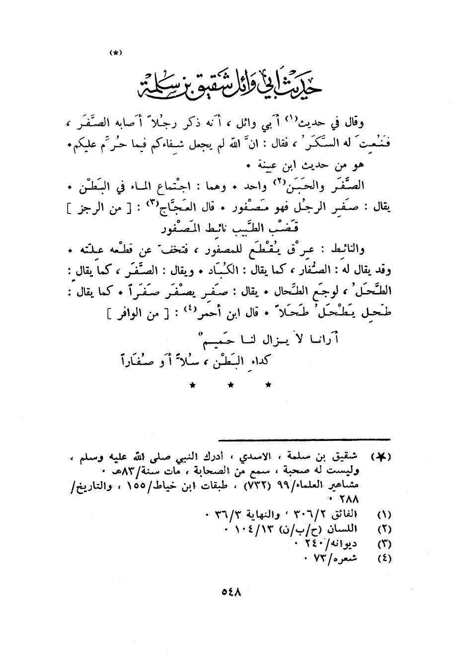 - حَدِيث ابي وَائِل شَقِيق بن سَلمَة
